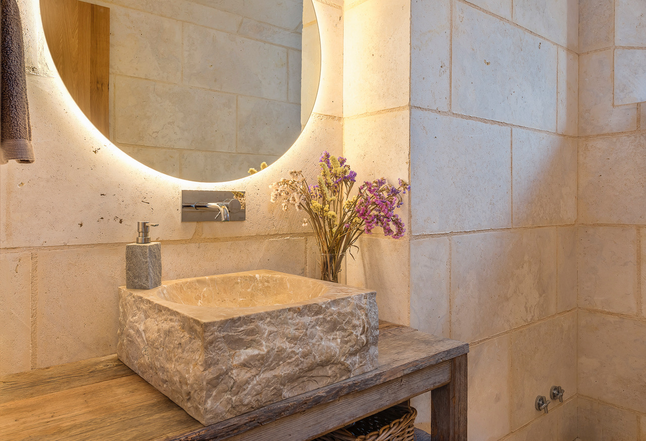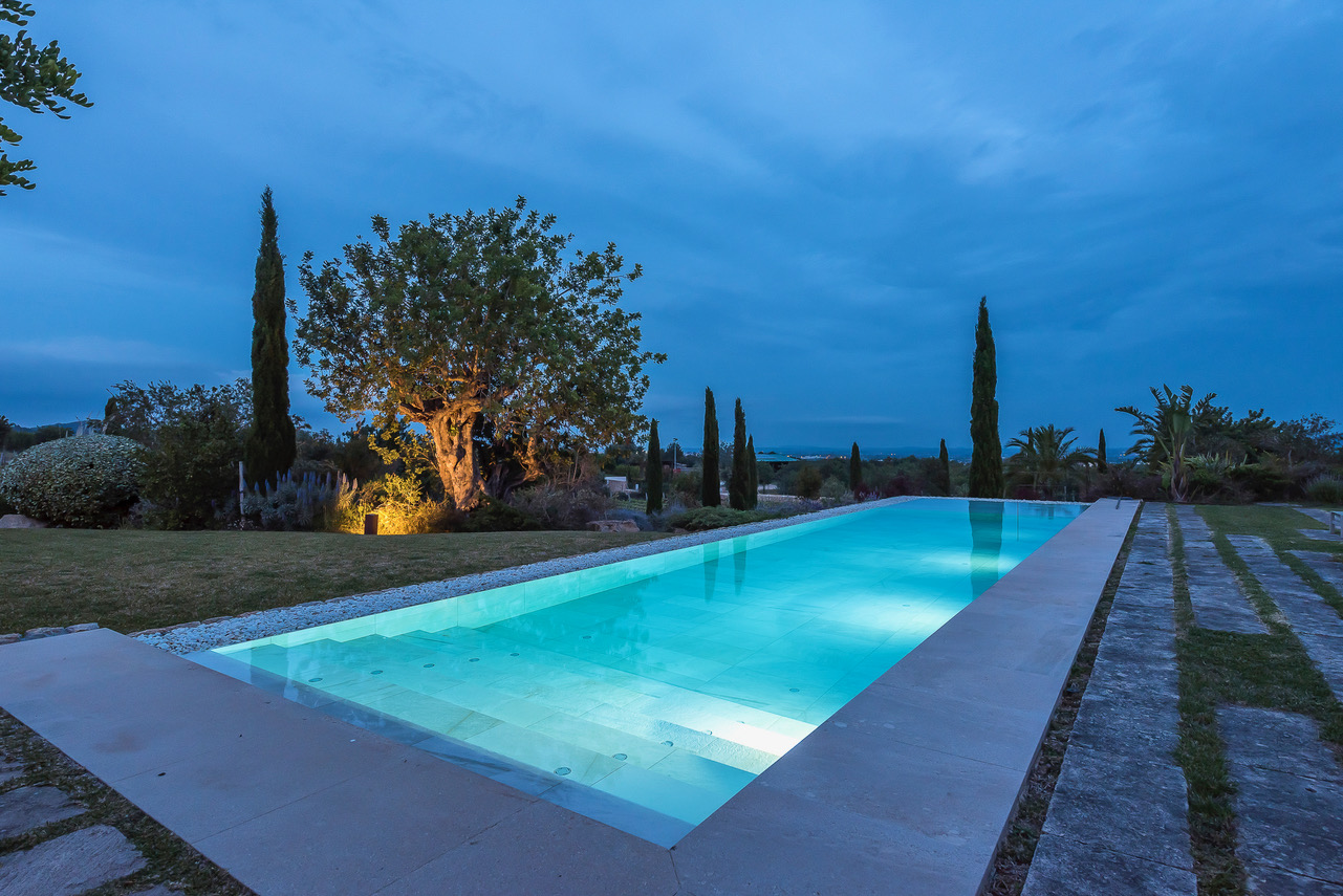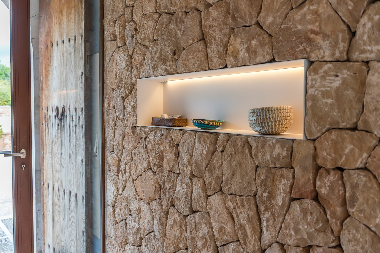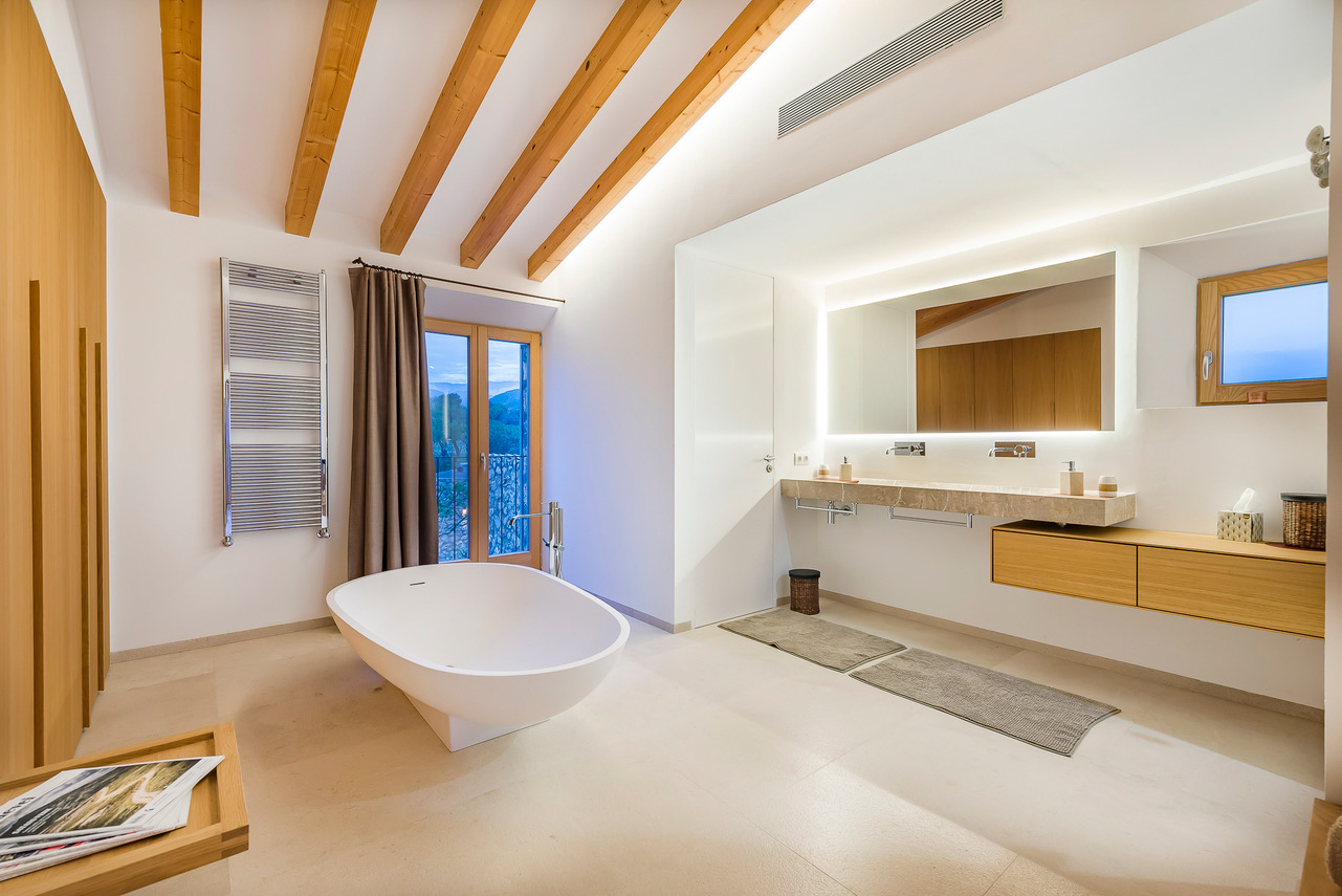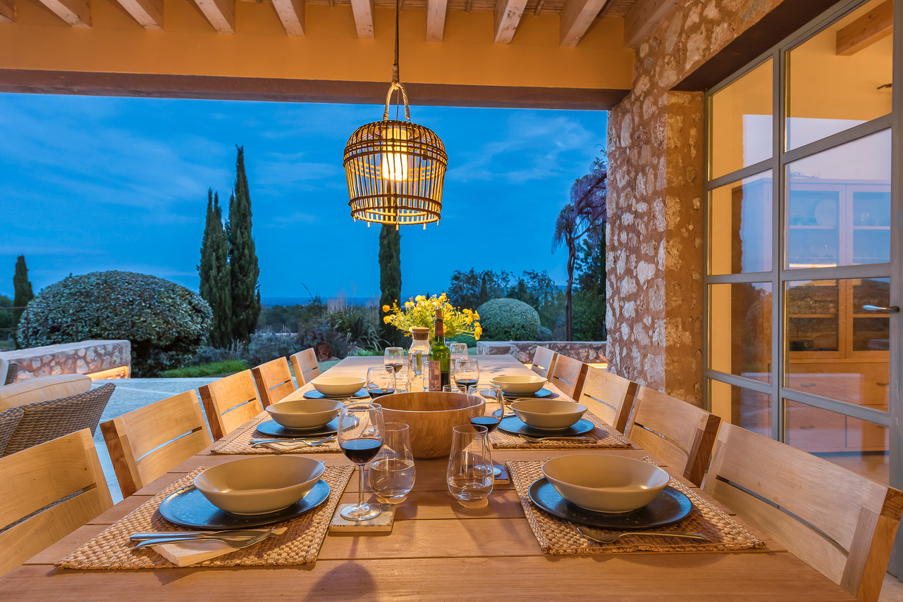 Cette récente Finca de 600 m2 a été construite en alliant parfaitement tradition et modernité. La pierre naturelle des murs extérieurs, que l’on retrouve dans certaines pièces intérieures, donne un c ôté authentique. Les équipements et la décoration que l’on trouve aussi bien dedans que dehors sont modernes et confortables. Les groupes de 10 personnes sont parfaitement à leur aise ici gr âce aux 5 chambres qui disposent toutes de leur propre salle de bain. La chambre de ma ître est un cocon idéal pour les couples : canapé, télévision, terrasse privative ou encore belle baignoire, tout a été pensé pour profiter au maximum de cette pièce. Différents espaces détentes ont été aménagés dans la villa avec un coin salon avec cheminée ou encore un autre avec télévision. Les grandes baies vitrées laissent grandement entrer la lumière et permettent d’observer la verte vue sur le jardin. La salle à manger avec sa large table tout comme la grande cuisine donnent sur une belle terrasse couverte. On peut y manger à l’ombre tout en utilisant le barbecue, ou profiter d’un verre sur les canapés et fauteuils. Une salle de sport très bien équipée est à votre disposition pour vous permettre de maintenir votre forme, même loin de chez vous.