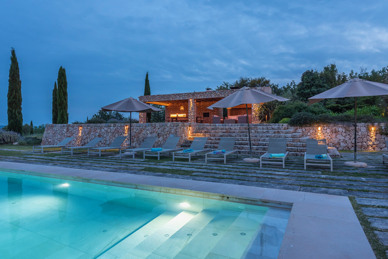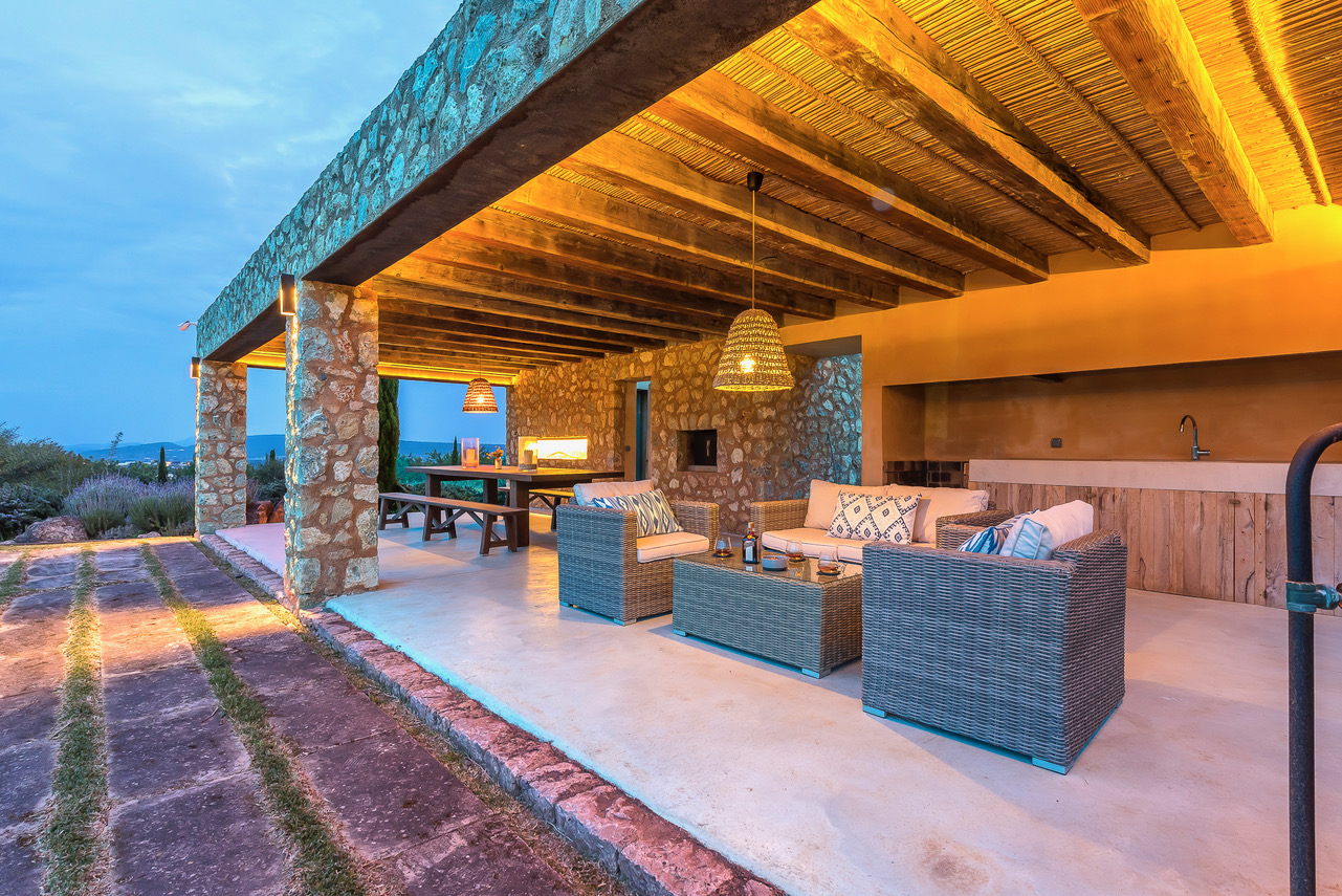 A l’extérieur, on retrouve tout ce qu’il faut pour vous permettre de passer un séjour en toute convivialité et tranquillité. Plusieurs coins lounge et des tables pour les repas sont installés à c ôté de la maison ou bien perchés sur la terrasse en haut de la piscine. La vue sur la campagne environnante et les beaux reliefs y est magnifique. Les transats au bord de la piscine sont aussi l’endroit parfait pour vous adonner au bronzage ou bien profiter d’un bon livre. Sans voisins, ici une totale intimité et tranquillité bercera votre séjour.