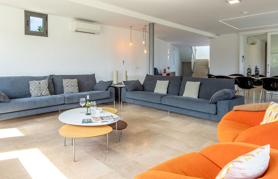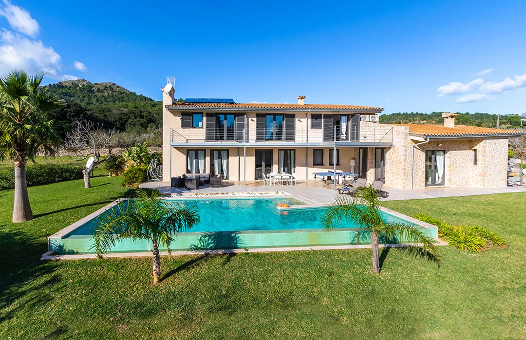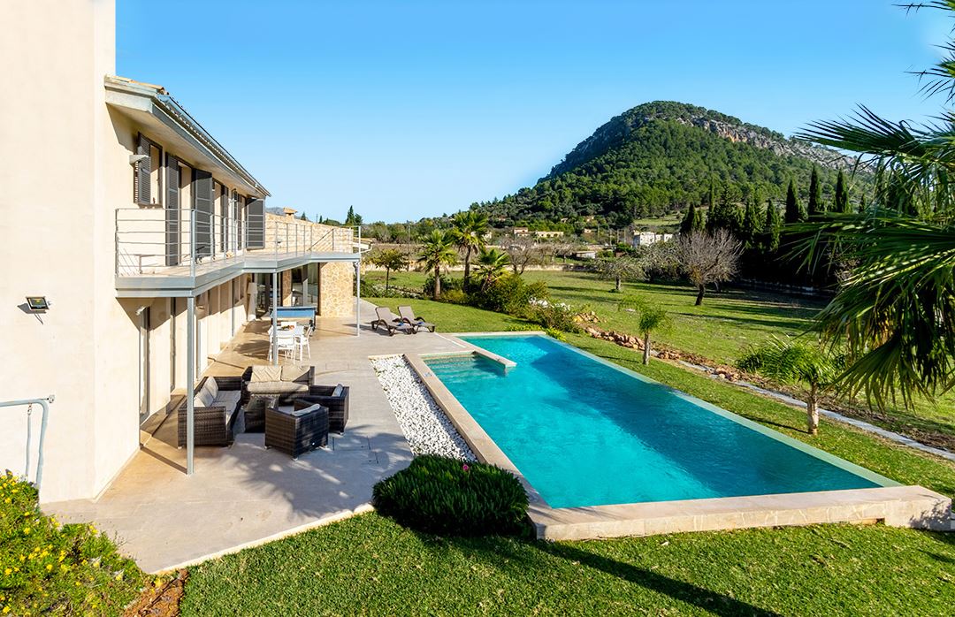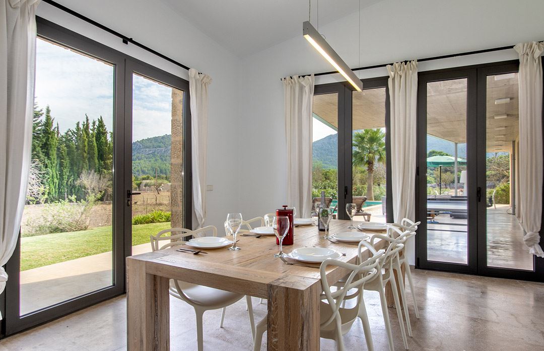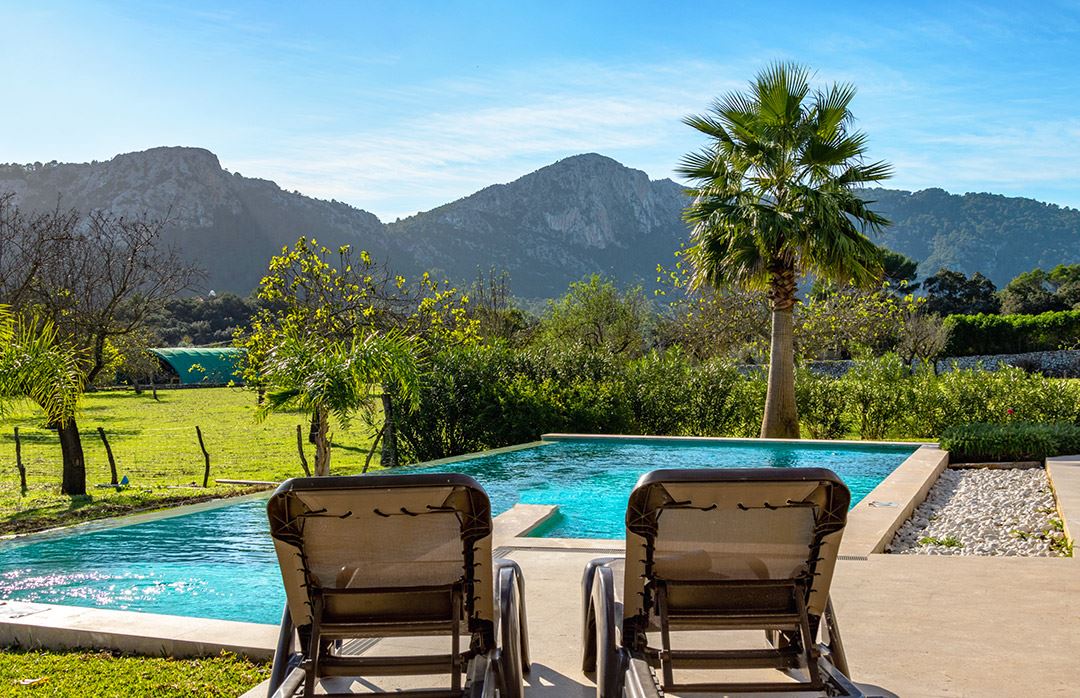 Depuis le jardin, la vue à admirer est totalement dépaysante avec les reliefs qui entourent la maison. La Tramuntana et les champs seront vos voisins de vacances. Pour vos divertissements sans quitter la villa, la grande piscine privée, avec ses 12 x 6 mètres, offre de la place pour tous pour se rafraîchir lors des chaudes journées d’été en extérieur. Une fois à l’intérieur, la climatisation prend le relais pour vous garantir de fraîches et douces nuits. La table de ping pong vous permettra d’organiser de joyeux duels entre amis. Pour celles et ceux qui désirent plutôt profiter tranquillement d’un verre en fin d’après-midi en admirant le beau ciel estival, le salon extérieur sera votre endroit préféré.