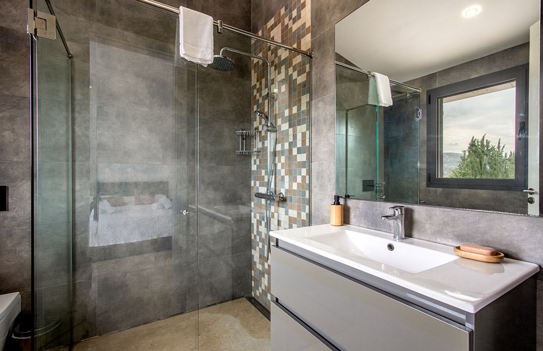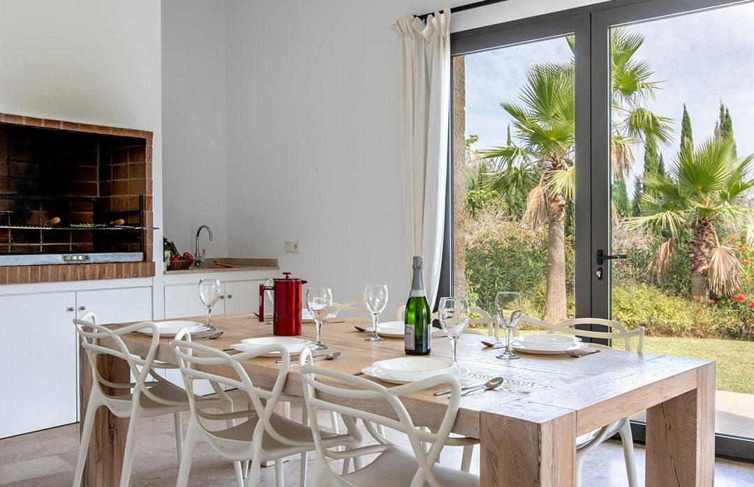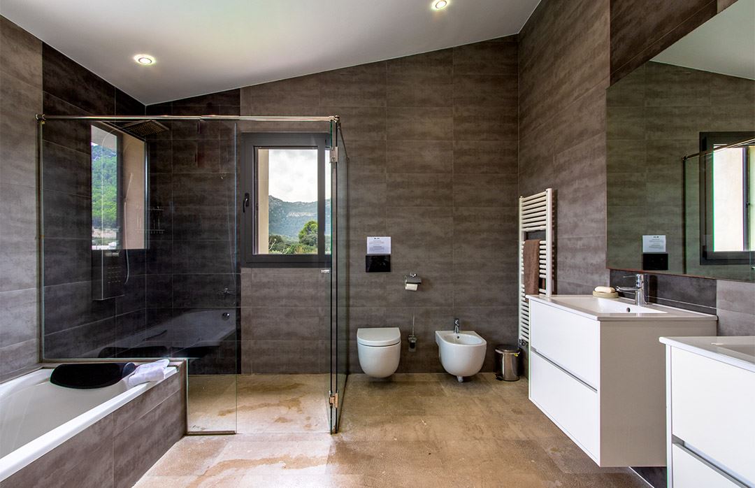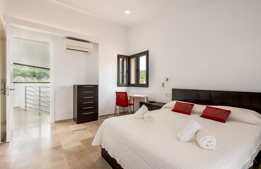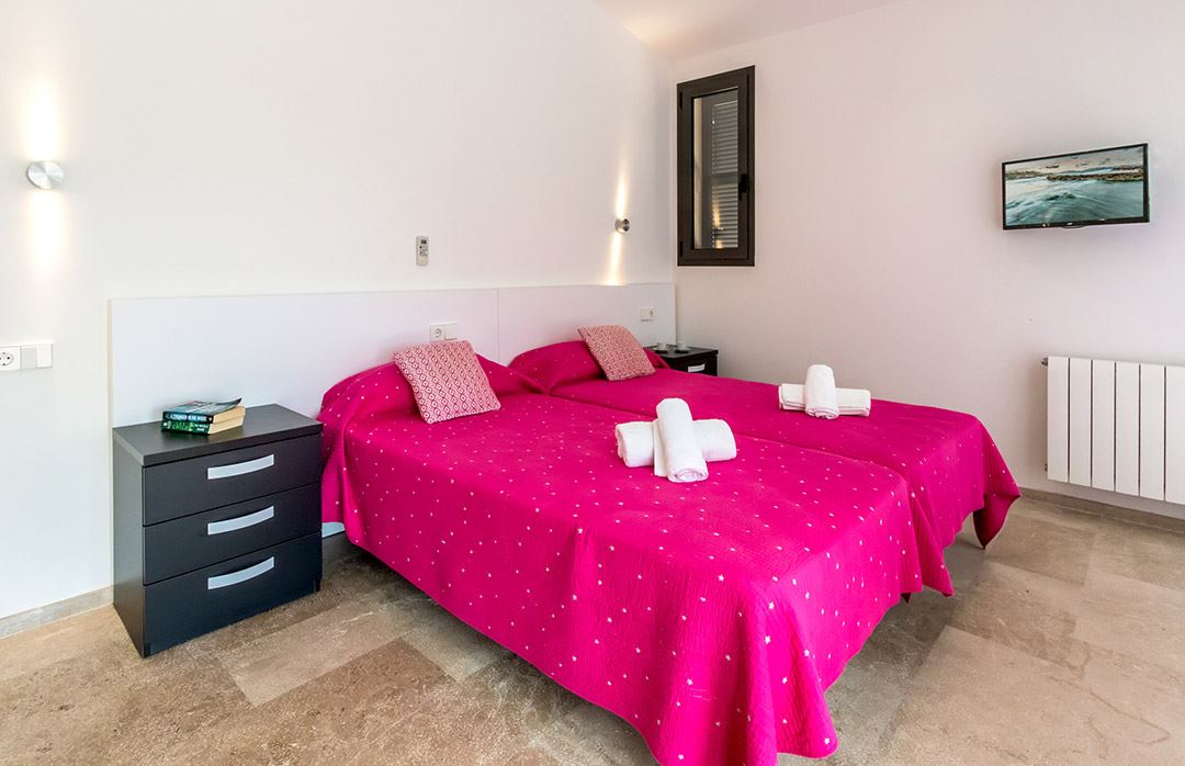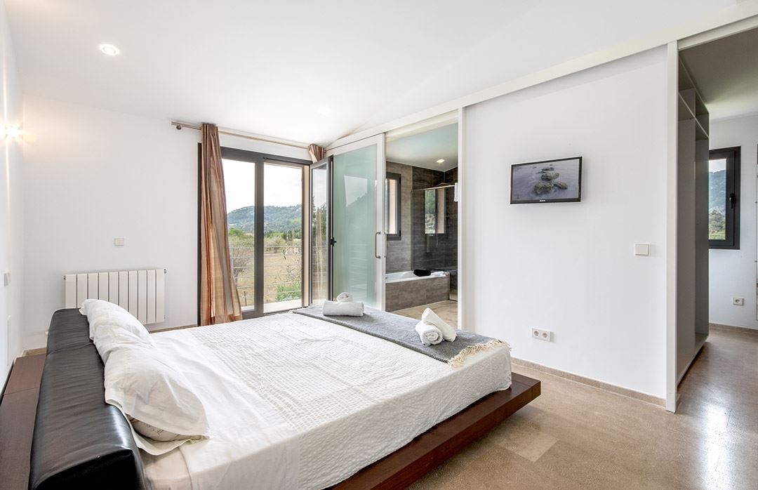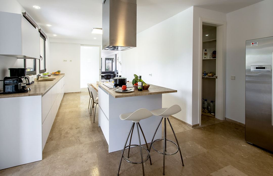 Les intérieurs ont été meublés de façon moderne et confortable pour un séjour de haut standing. Côté nuit, les quatre chambres disposent chacune de leur propre salle de bain pour que tout le monde ait son intimité. Pour des moments de convivialité, réunissez-vous autour de l’îlot central de la grande cuisine toute équipée pour cuisiner en groupe et goûter aux spécialités de l’île que vous aurez acheté le matin même au fameux marché de Pollença.