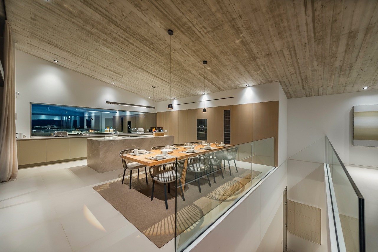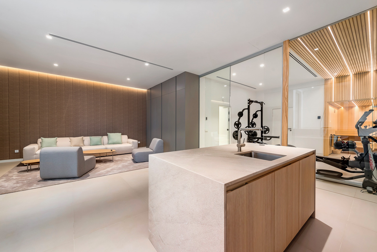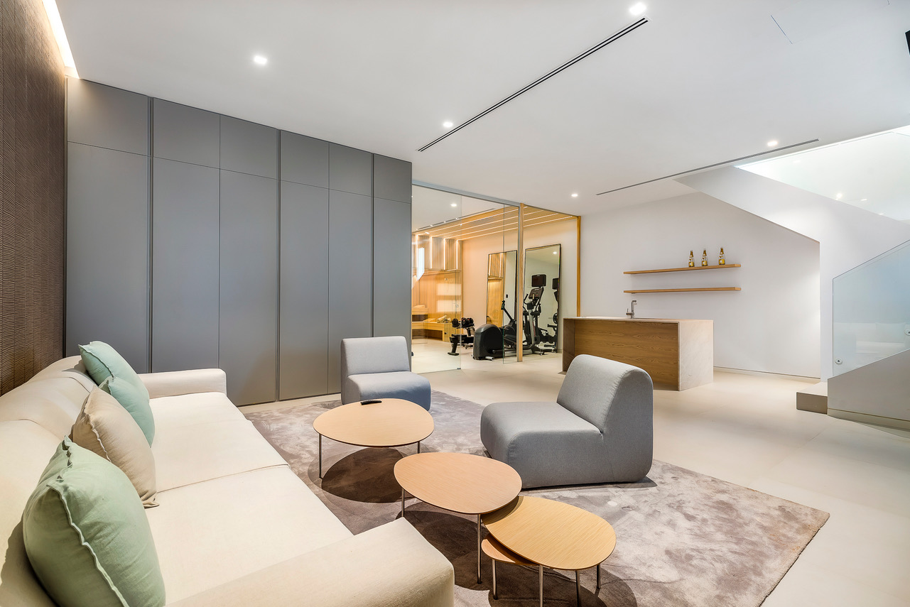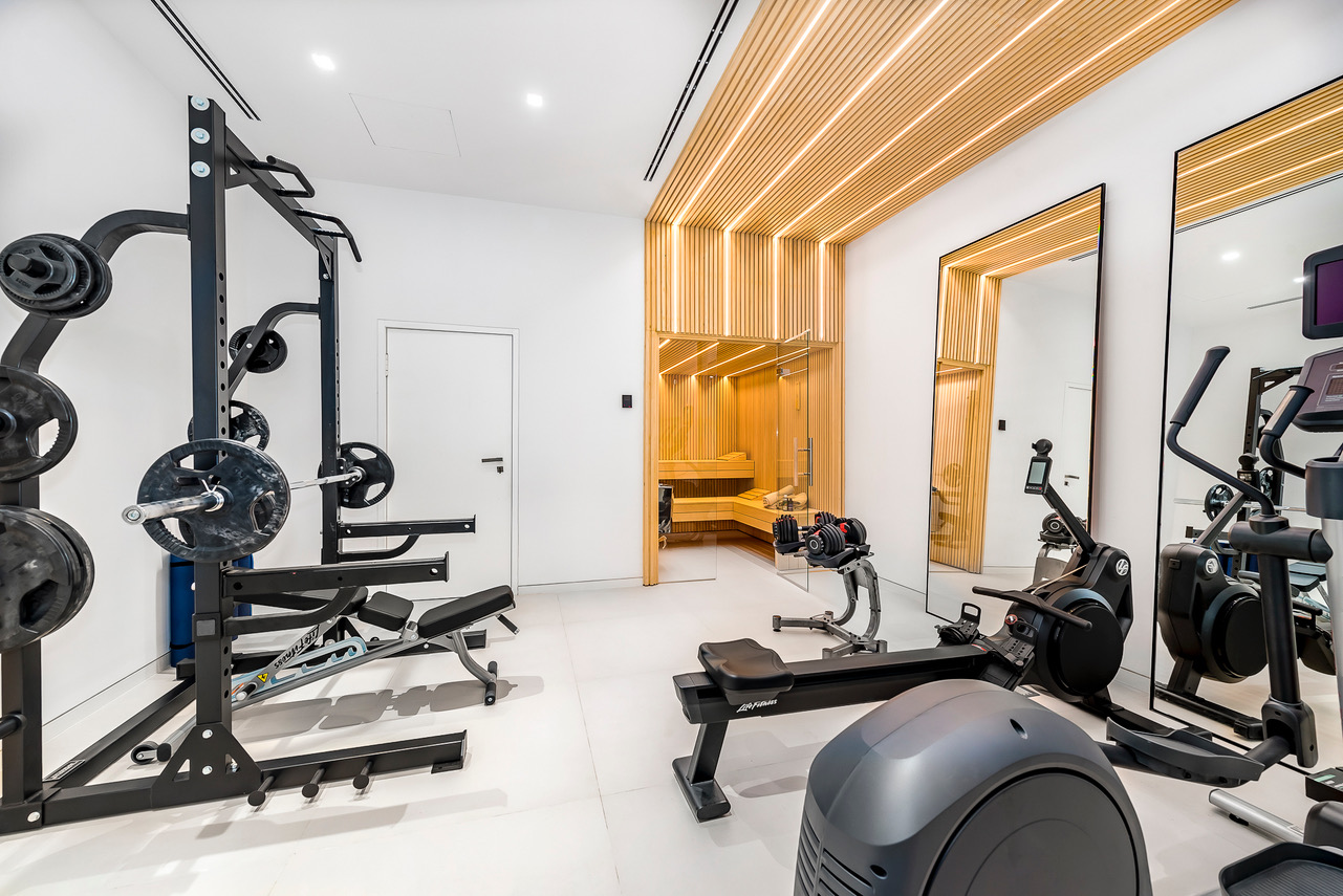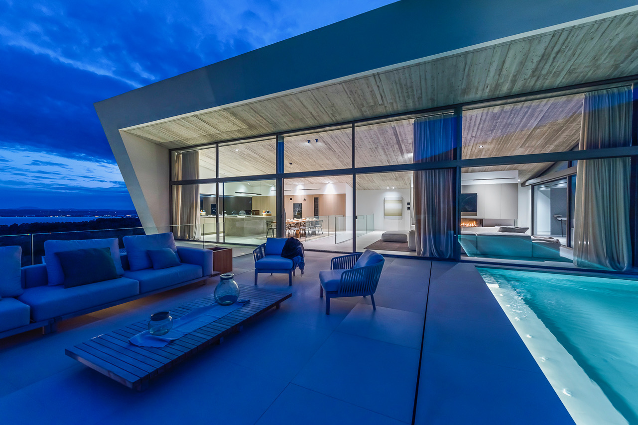 Au niveau de l’entrée se trouve l’espace nuit avec les 4 chambres doubles et salles de bain. Une belle terrasse y a été également aménagée. Cuisine d’été extérieure, barbecue, grande table et éclairage font de ce lieu l’endroit idéal pour profiter de délicieux repas. La piscine permet de faire de belles longueurs tout en profitant d’une magnifique vue sur la mer et sur les reliefs alentours. A l’étage, une grande pièce divisée en deux continue d’offrir là encore une vue exceptionnelle sur la nature environnante gr âce à ses grandes baies vitrées. Le salon avec sa cheminée au gaz, une fois allumée, confère à l’endroit une ambiance relaxante de cocooning. Les touches de couleurs au plafond et au sol avec les tapis apportent un c ôté encore plus chaleureux. Le mobilier est moderne et de grande qualité. Une deuxième terrasse à cet étage permet de profiter d’un salon extérieur et surtout d’un grand bassin avec jacuzzi. Un ascenseur vous mènera au sous-sol qui est composé d’un salon avec une salle de fitness et un sauna pour des moments de bien- être.