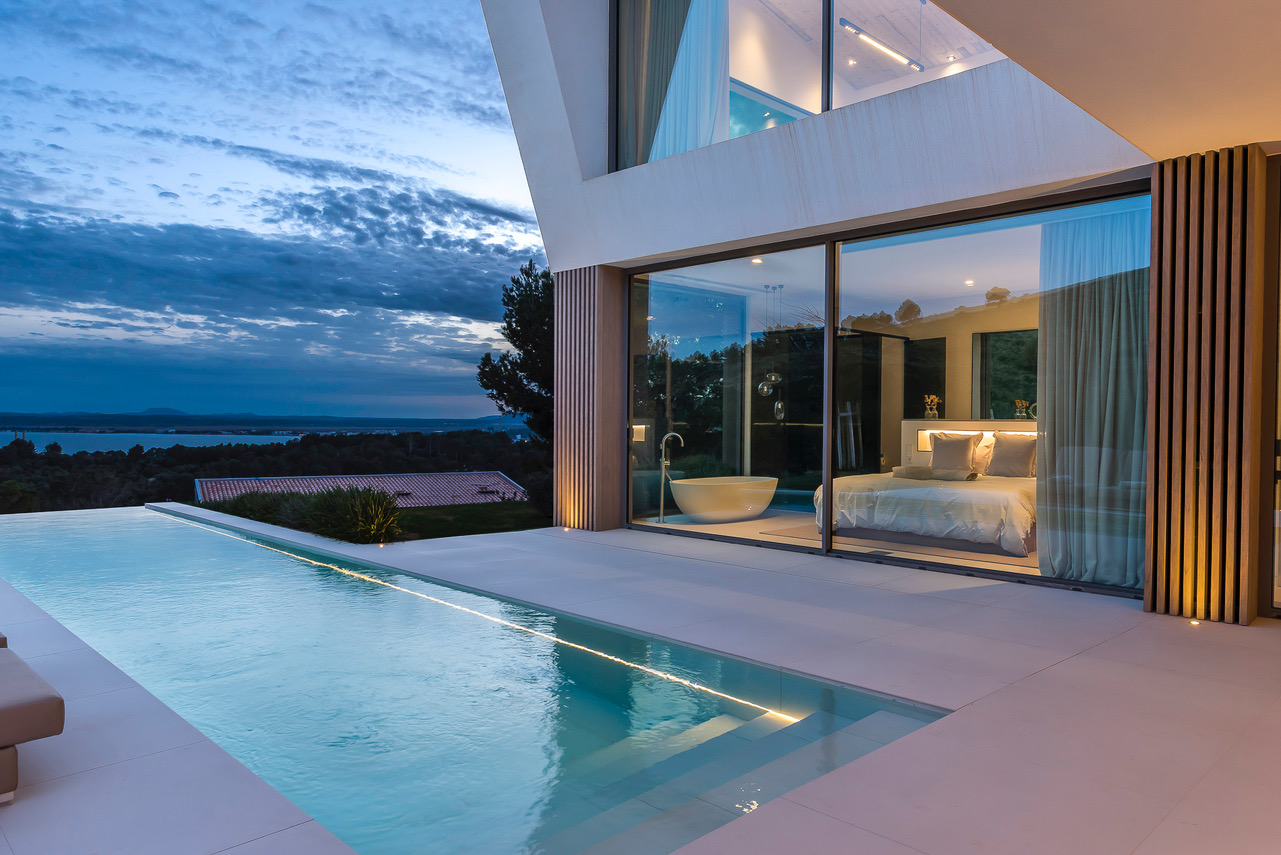 Sur la c ôte nord de l’ île de Majorque se trouve cette sublime villa de construction toute récente. Avec son architecture originale aux lignes géométriques épurées, son style est définitivement moderne. Cette propriété de luxe bénéficie d’une place de choix dans un quartier résidentiel chic d’Alcudia.