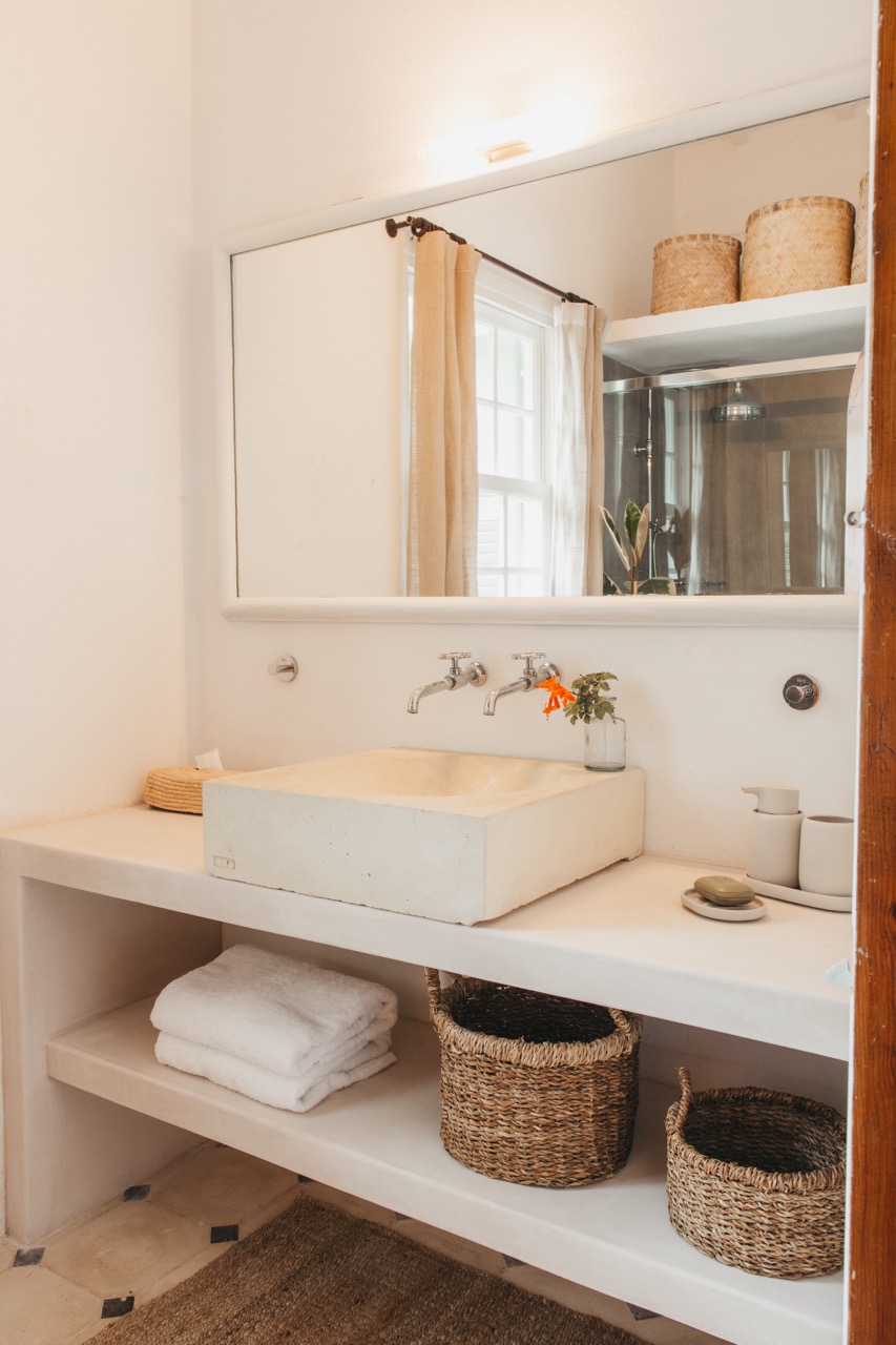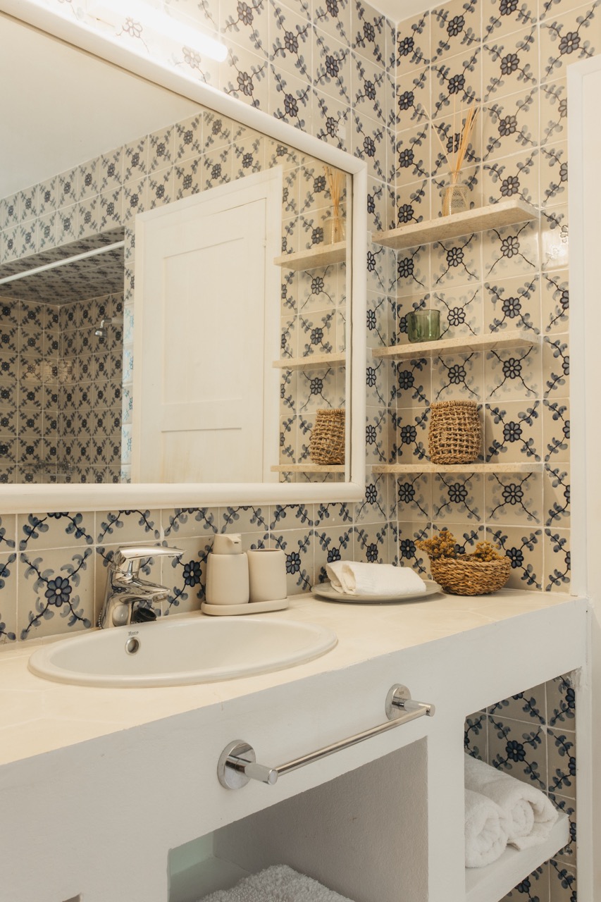 Sous la piscine, un escalier conduit aux deux dernières chambres de la propriété. Toutes deux disposent de lits doubles et partagent une salle de bain — ce sont les seules à le faire. Elles sont donc idéales pour des familles (parents et enfants), des amis proches ou des invités nécessitant une attention particulière. Ces deux chambres bénéficient d’une grande terrasse avec vue sur les oliviers et les arbres fruitiers.
