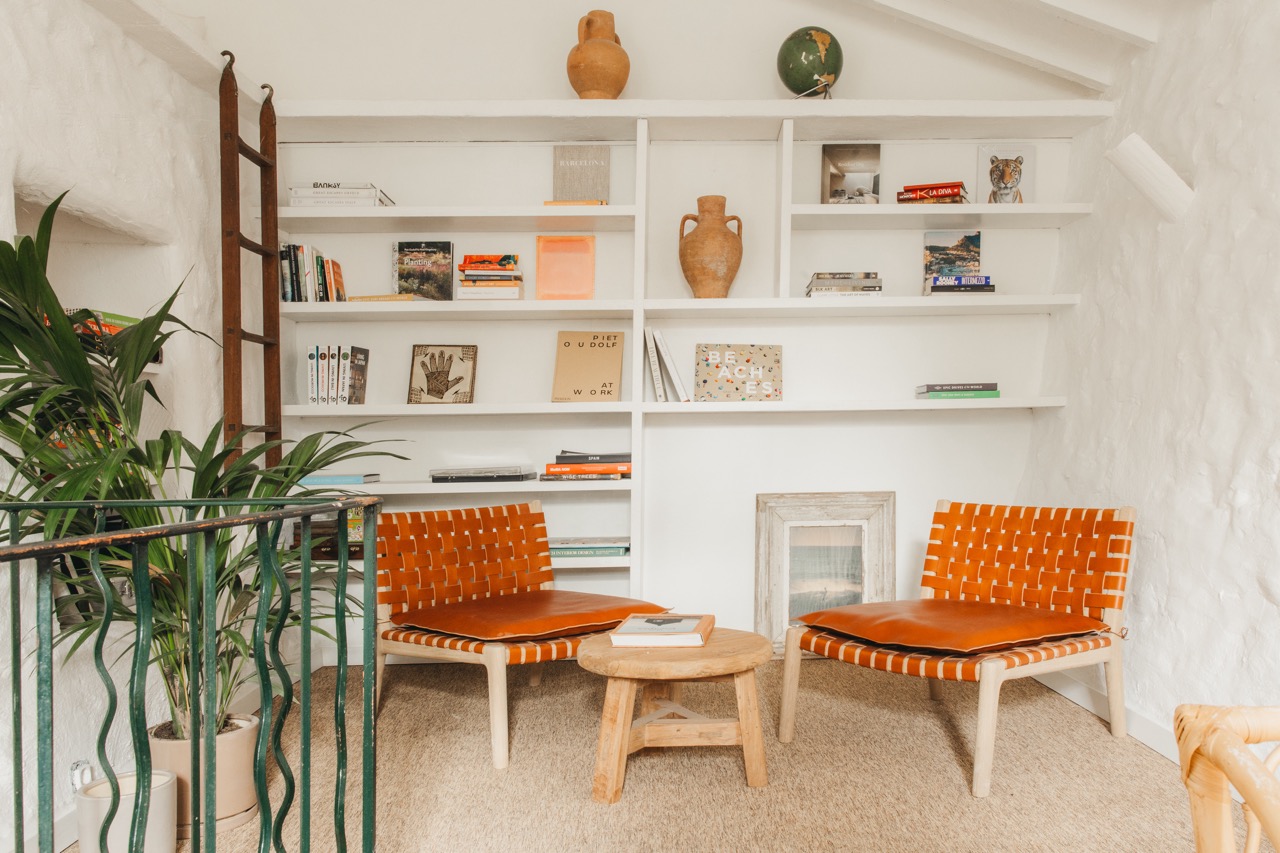 À côté du salon se trouve une bibliothèque remplie de livres d’art, de cuisine et de design, ainsi que de jeux de société et d’un espace de travail dédié. C’est un lieu parfait pour les jeunes enfants comme pour toute personne ayant besoin d’un espace calme pour travailler.
