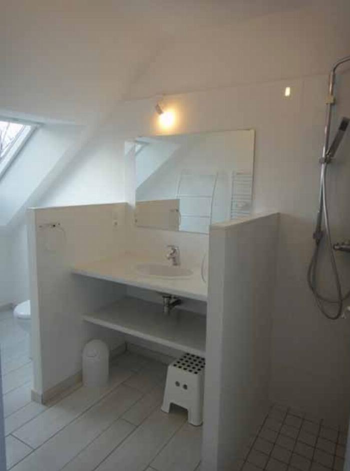 Chambre double avec lit 160 et Salle de bain en suite avec lavabo simple, douche