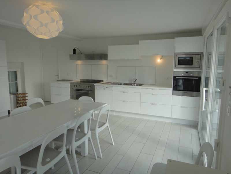 Cuisine avec bouilloire, four micro ondes, cafetière, grille pain, congélateur, réfrigérateur, lave vaisselle