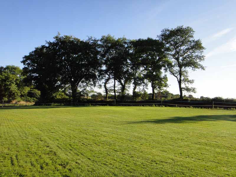 Terrasse solarium avec vue sur terrain arboré et campagne