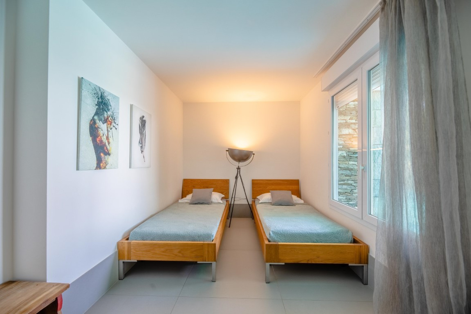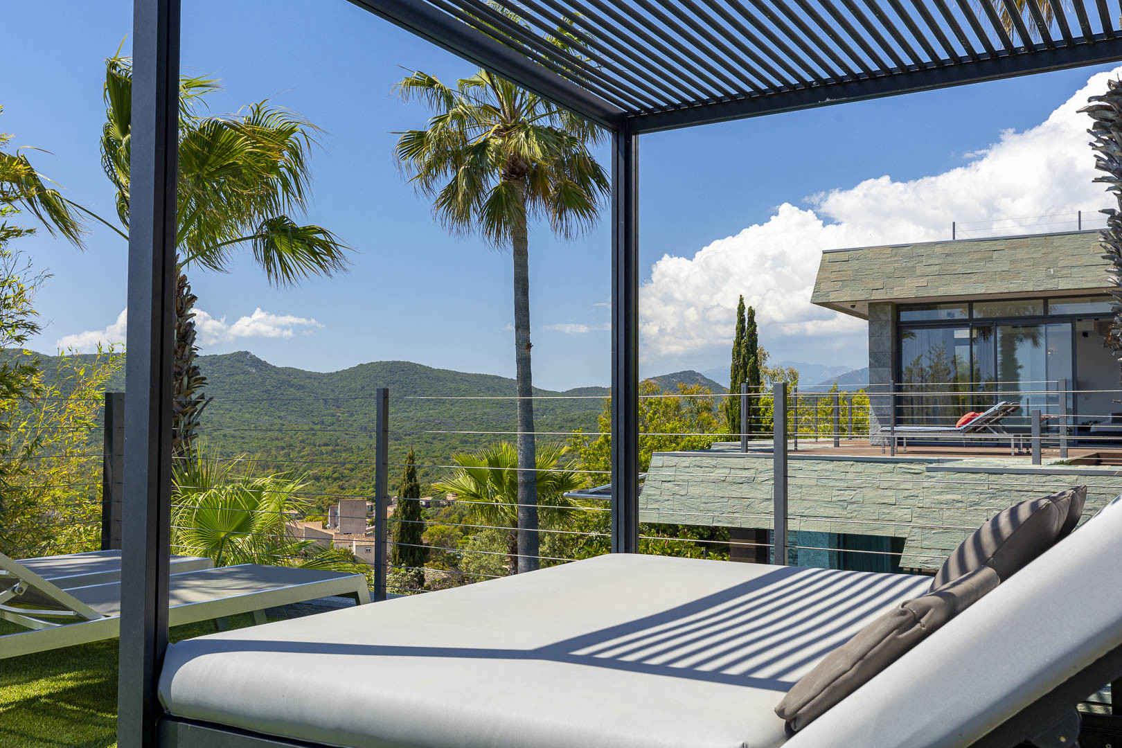 A Pinarellu, cette villa d’architecte est un vrai nid d’aigle, à seulement 650 mètres à vol d’oiseau de la plage. Toutes les chambres apportent un confort absolu, chacune étant climatisée, possédant leur propre télévision et étant équipée d’un système son performant. Plusieurs terrasses et jardins s’articulent autour de 3 niveaux d’habitation, parfaitement intégrés au paysage naturel. Les terrasses en gazon synthétique ou en teck, les pierres sèches et les palmiers apportent du charme à cette propriété moderne. Associés à une cuisine d’été suréquipée, une magnifique piscine de 70 m2 et un spa chauffé et couvert, les espaces extérieurs ne forment qu’un seul et même monde, loin du stress de la ville ou du travail. Attendez vous à des vues mer éblouissantes, un mobilier de luxe et un service irréprochable. Pour les amoureux du golf, un putting green avec partie pitching green est également aménagé à l’extérieur.