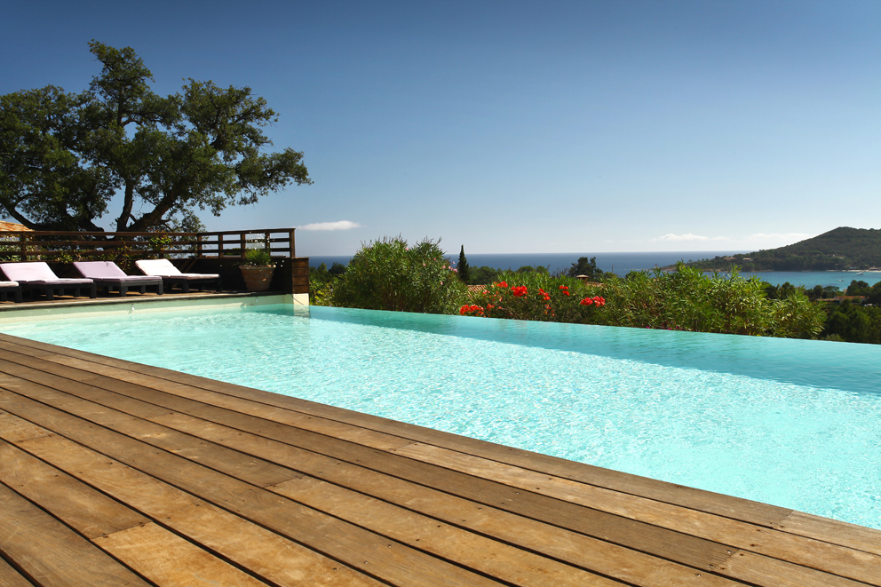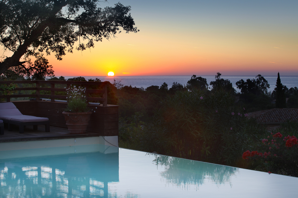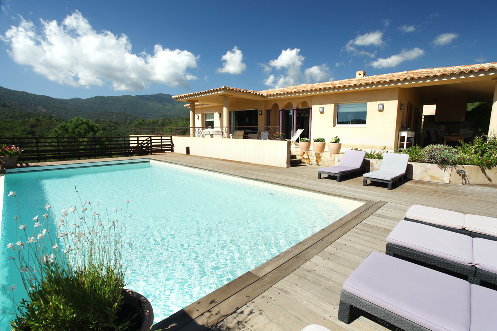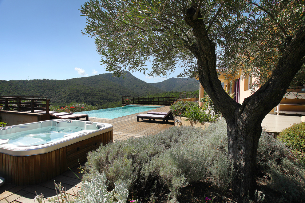 Lieu de relaxation et de calme, la villa domine le maquis corse et la mer Méditerranée. Elle dispose de 4 chambres avec chacune sa salle de bain, d’une cuisine équipée, d’un joli séjour lumineux, et d’une terrasse avec une cuisine d’été couverte. Pour combler vos attentes de farniente : un SPA et la piscine à débordement de 10m par 5m, entourée d’une plage de bois, et depuis laquelle on admire les montagnes et la mer.