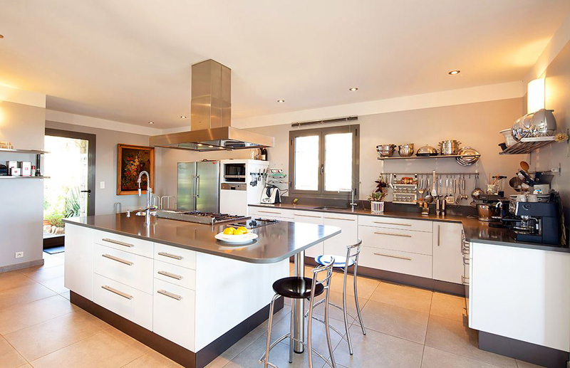 A l’intérieur, la cuisine est le point d’orgue de l’immense open-space. Le propriétaire est un chef réputé, et c’est donc un véritable atelier d’artiste qui s’offre à vous!