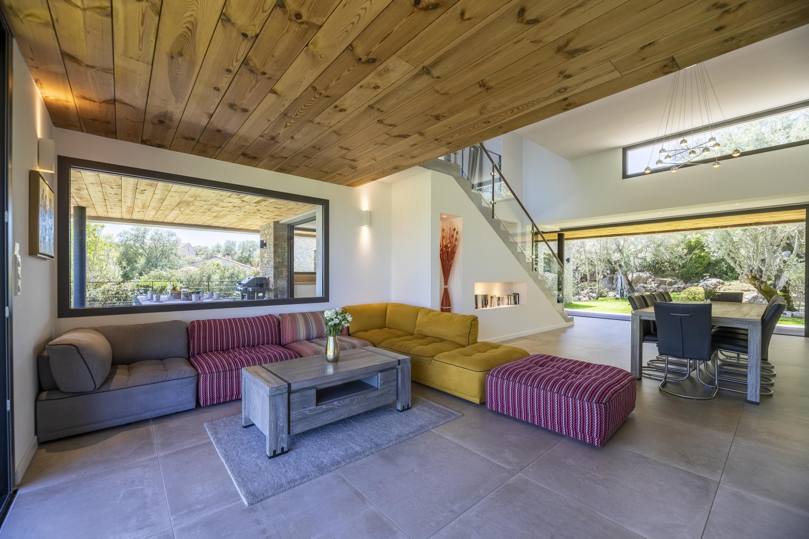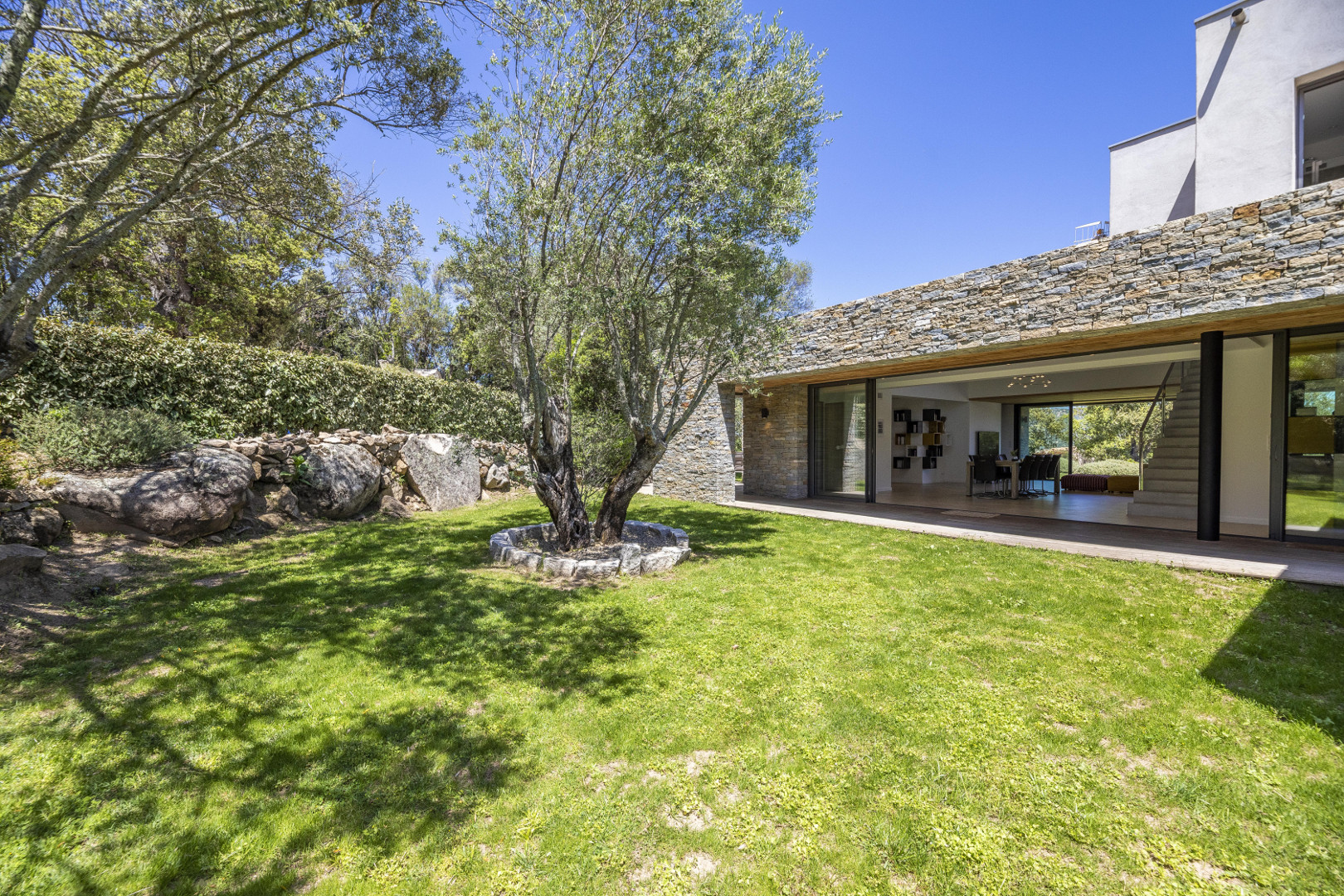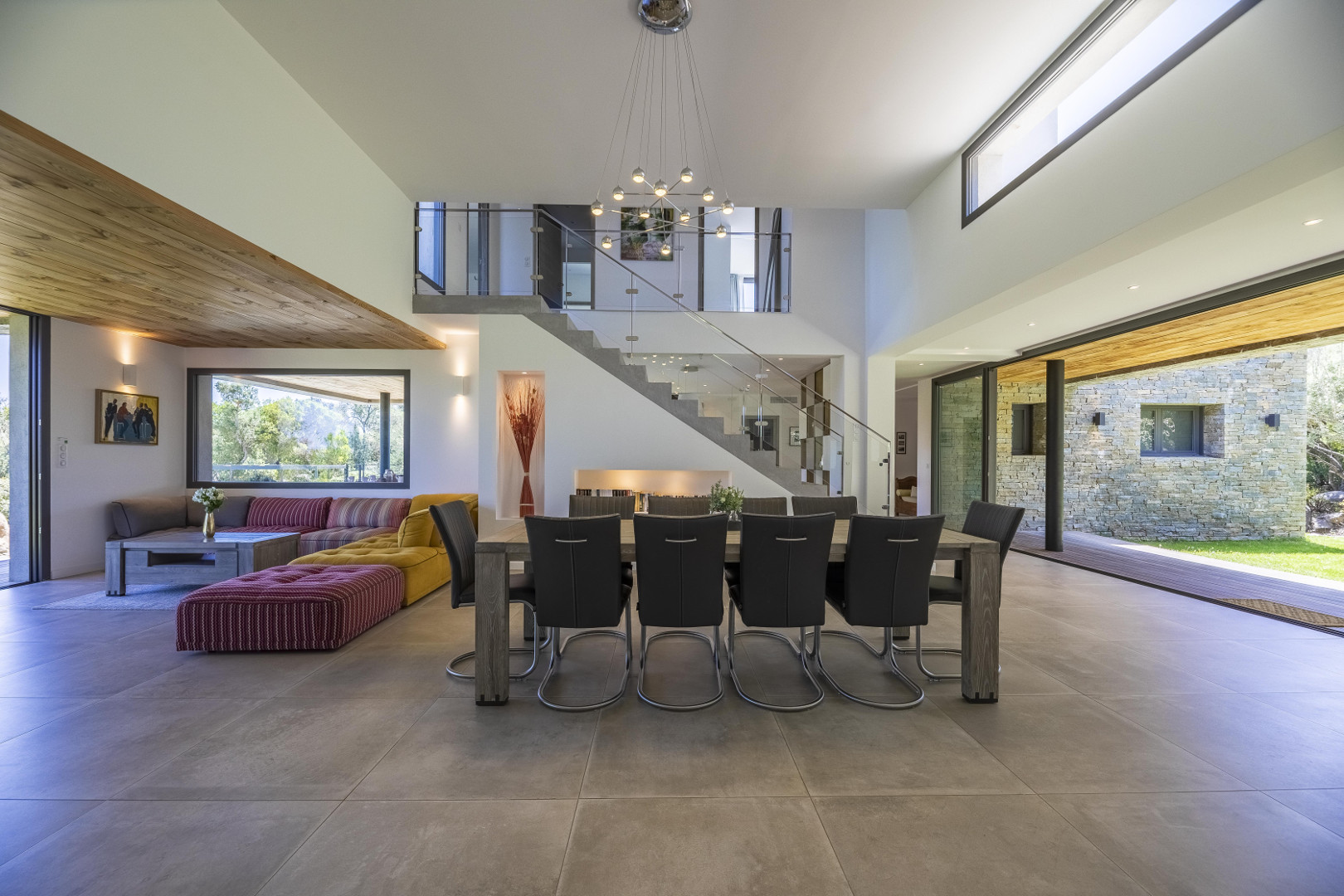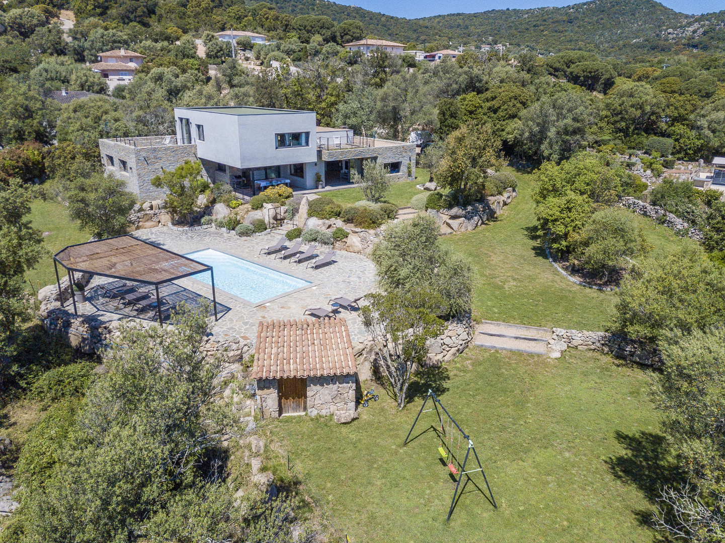 Offrez-vous une parenthèse de rêve au sud de l’Île de Beauté dans cette magnifique villa avec piscine privée et chauffée. Posté au beau milieu des collines, ce bijou corse vous offrira une tranquillité sans égale. Ses espaces de vie, modernes et élégants, bénéficient d’une luminosité naturelle grâce aux nombreuses baies vitrées qui les entourent. Amoureux du septième art, vous aurez l’opportunité de visionner vos films et shows favoris dans la salle de cinéma entièrement équipée mise à disposition dans le sous-sol de la maison. Pour les plus sportifs, vous pourrez réaliser vos séances quotidiennes dans la salle de fitness située au même étage. Ses cinq chambres, chacune accompagnée de leur propre salle de bain en suite, peuvent accueillir jusqu’à dix personnes. Dans le jardin, profitez d’un bain de soleil sur les chaises longues autour de la piscine. Optez ensuite pour un bain rafraichissant et quelques brasses. Lors de belles soirées d’été, partagez de délicieux repas entourés de vos proches sur la grande terrasse aménagée accessible depuis le salon. Idéalement située dans la région de Porto Vecchio, cette superbe villa sera le point de départ d’un grand nombre d’activités pour petits et grands. Débutez votre séjour par une découverte de la région depuis les airs. Embarquez à bord d’un hélicoptère et profitez d’une vue imprenable sur les plages de sable blanc, les baies isolées et les forêts denses. Adeptes d’activité marine, participez à une excursion en bateau pour admirer les côtes et les îles environnantes. Si vous préférez rester sur la terre ferme, ne manquez pas de visiter la célèbre citadelle de Bonifacio. Vous pourrez notamment y apercevoir ses falaises de calcaire avant de vous perdre dans les ruelles historiques de la ville. À la recherche du farniente ? Glissez vos pieds dans le sable fin de la plage de Palombaggia. Ce petit coin de paradis est une véritable perle corse. Enfin, lors de douces soirées estivales, optez pour un dîner gastronomique au restaurant Casa del Mar. Le chef italien Fabio Bragagnolo vous emmenera dans un voyage à travers les saveurs corses et italiennes. Accompagné par le chef pâtissier Claudio Pezzeti, ces deux personnalités incontournables de la gastronomie vous proposeront une cuisine méditerranéenne épurée et moderne.