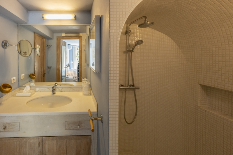Chambre double Verte avec coin bureau avec dressing, accès terrasse, climatisation, vue mer et Salle de bain séparée avec douche, bidet et WC