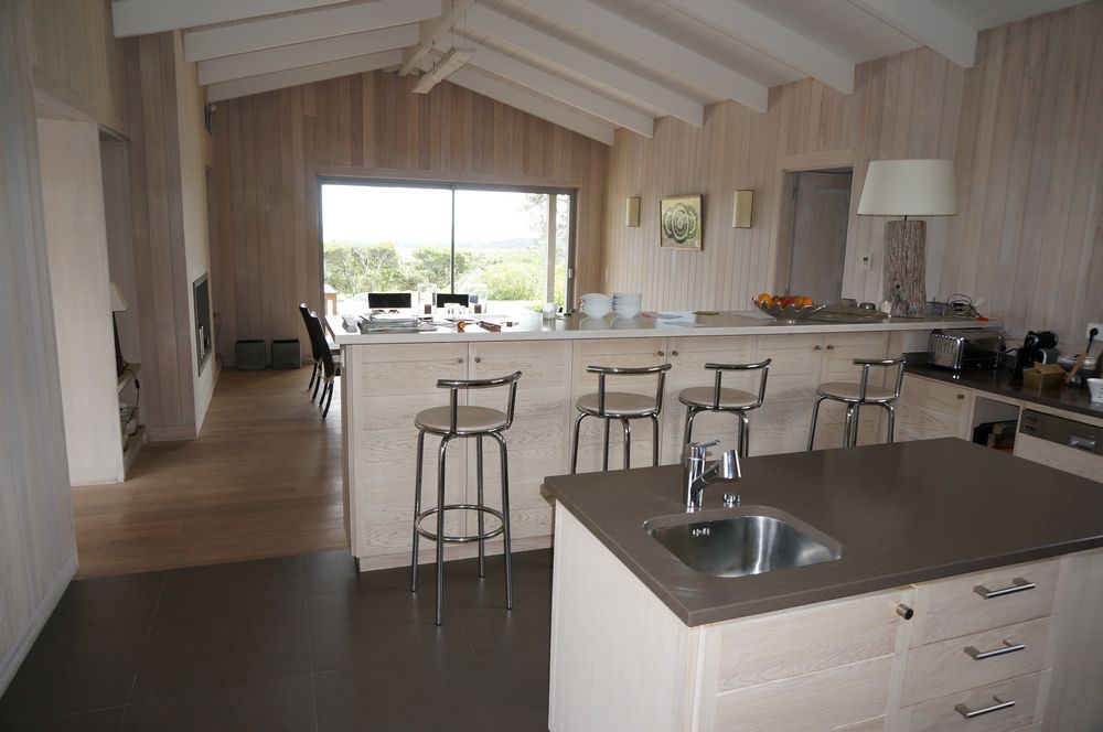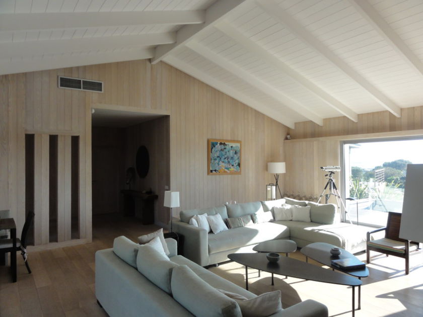 Salon Boss Bose système musique et home cinéma, accès extérieur, cuisine, salle à manger et entrée avec télévision plasma, home cinema, climatisation, satellite, internet, cheminée, vue mer, vue jardin, vue piscine