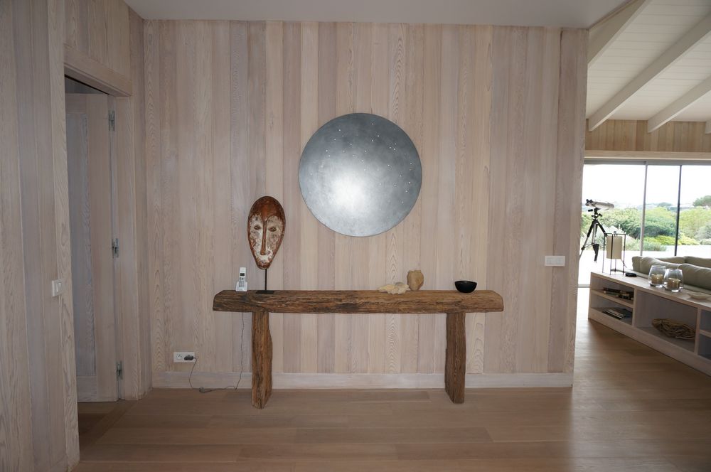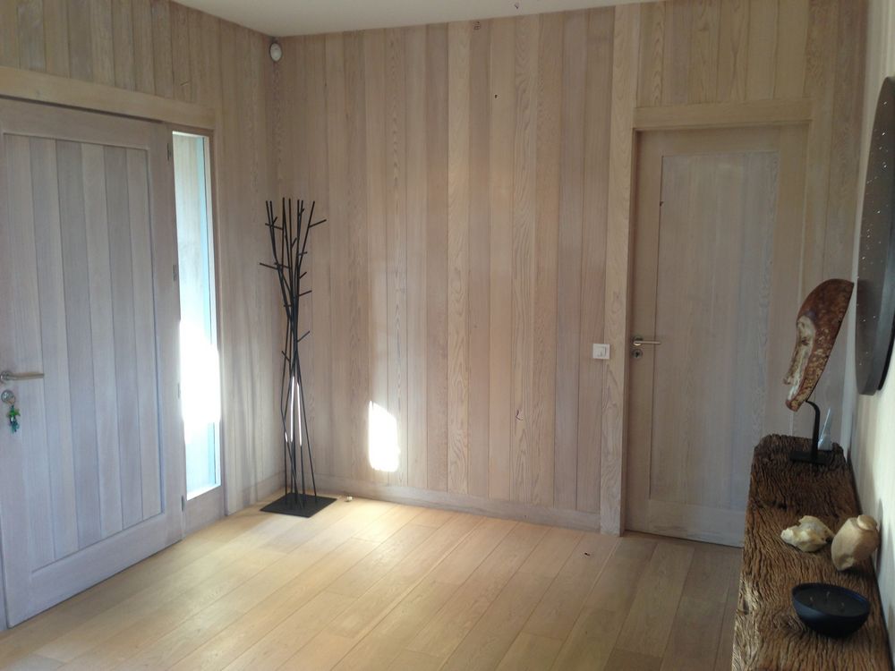 Entrée avec une grande porte en bois, un hall distribue les deux côtés de la maison