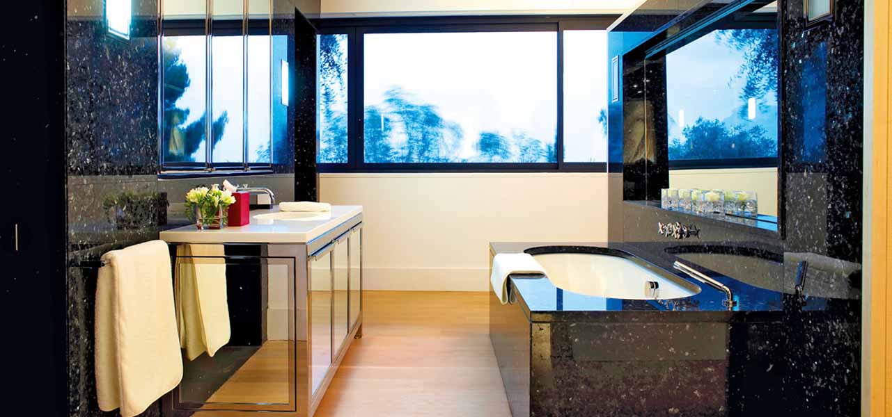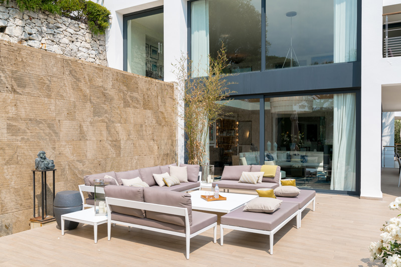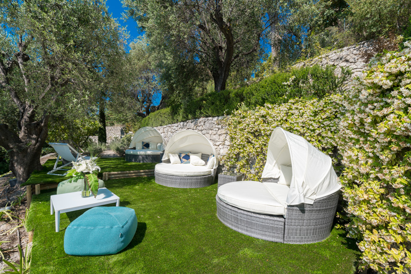 Voici l'une de ses maisons iconiques où tout semble spécial et unique. Ce ne sont pas seulement lieux, mais surtout la gentillesse de ces gens… . Une abondance de fleurs fuse à travers les murs de pierres. Des oliviers, des cyprès ou des eucalyptus apportent leur ombre ; du jasmin, du romarin ou les jacarandas parfument cet ensemble magnifique. Des pelouses manucurées se déroulent jusqu'à la piscine. Un pont de bois mène ensuite à la suite d'invités qui propose deux chambres.