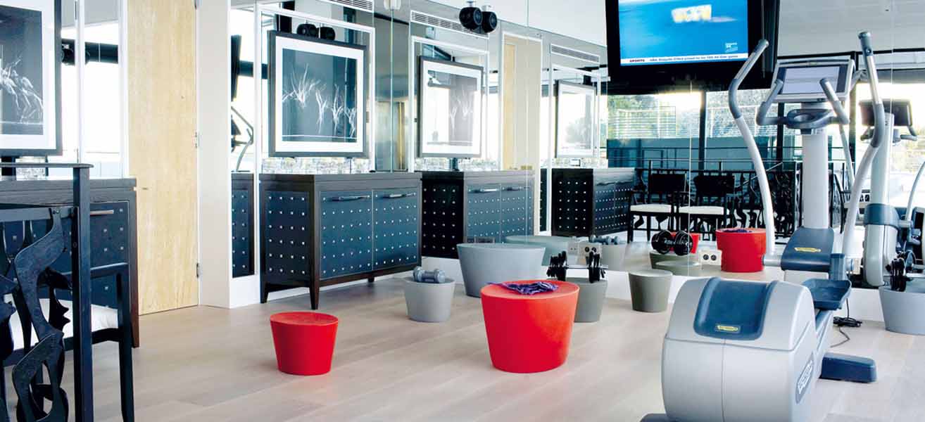 Quatrième étage: Salle de gym avec vélos d'appartement, altères, hammam, douche et toilettes,