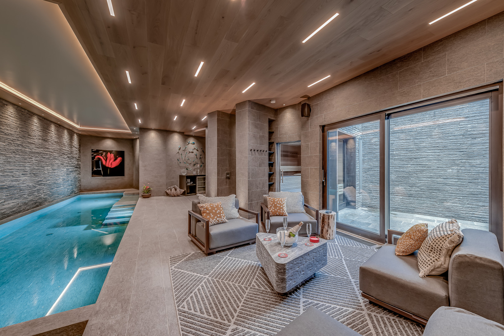 Vous rêvez d’un séjour paisible au pied des pistes? Ce chalet de 560m2 avec 7 chambres et piscine privée est fait pour vous. Ses quatre spacieux étages peuvent accueillir jusqu’à 14 personnes. Les larges baies vitrées qui entourent le chalet vous permettront de bénéficier d’une lumière naturelle et d’une vue à couper le souffle. Son immense pièce à vivre vous permettra de créer des souvenirs inoubliables en famille ou entre amis. Vous pourrez également profiter d’un moment de détente dans le jacuzzi tout en admirant le paradis blanc qui s’étend face à vous. Ce n’est cependant pas l’unique endroit où vous pourrez vous réjouir d’un moment de tranquillité. En effet, au niveau inférieur vous trouverez une piscine, un sauna, un hammam ainsi qu’un second jacuzzi. Si vous êtes adeptes de cinéma, vous aurez l’opportunité de visionner vos films préférés dans la salle de cinéma qui se trouve au même étage. Vous l’aurez compris, votre séjour ne pourra être que relaxant et apaisant. Idéalement situé pour découvrir les Trois Vallées, le plus grand domaine skiable d’Europe, ce bijou alpin sera le départ de nombreuses activités. En effet, vous n’aurez qu’à mettre un pied, ou un ski, en dehors du chalet pour vous lancer sur l’une des pistes. La proximité avec la station Courchevel 1850 est un réel avantage et le chalet bénéficie d’un service de chauffeur qui vous permettra de vous rendre facilement où vous le souhaitez. Vous pourrez également découvrir les montagnes environnantes lors d’une balade en raquette de neige ou encore en chien de traîneau. Chacun aura l’occasion de réaliser une activité qui puisse parfaitement lui correspondre. Vous n’aurez définitivement pas le temps de vous ennuyer. N’hésitez plus, faites de ce superbe chalet la destination de votre prochain séjour !