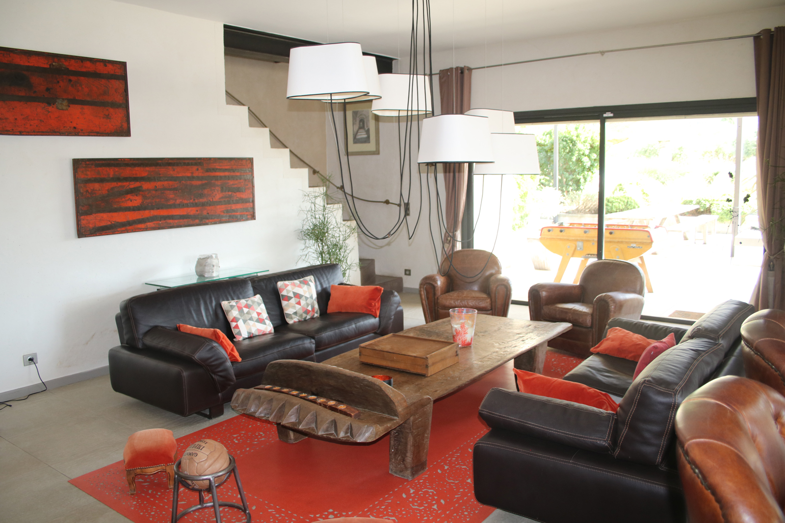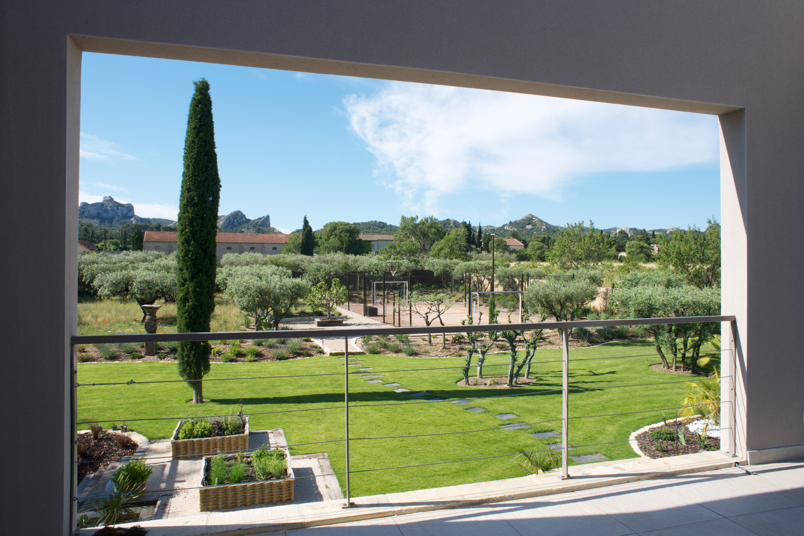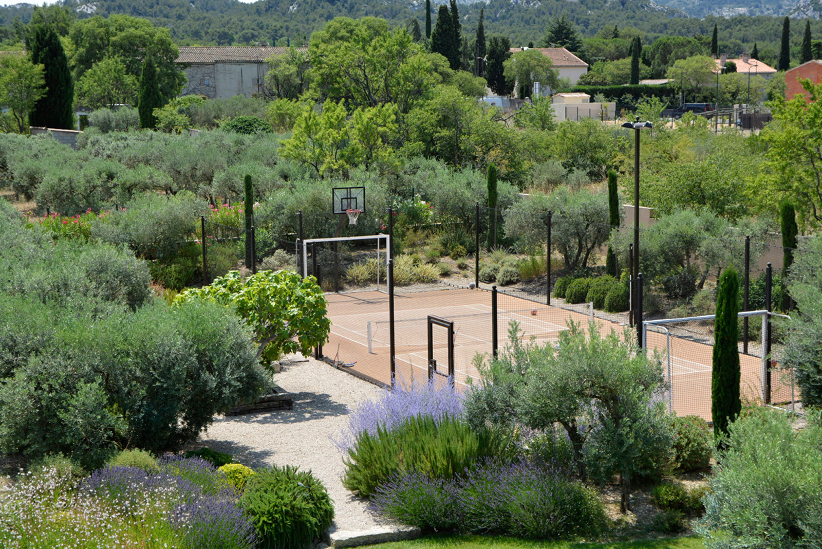 Les espaces extérieures ont été conçus pour que les hôtes puissent en profiter au maximum: terrasses aménagées avec soin, grande piscine (12m x 6m), boulodrome, jardin.Pour les plus sportifs, un terrain de tennis half court, qui permet également la pratique du volley, hand ball, foot, basket et badminton, est à votre disposition.