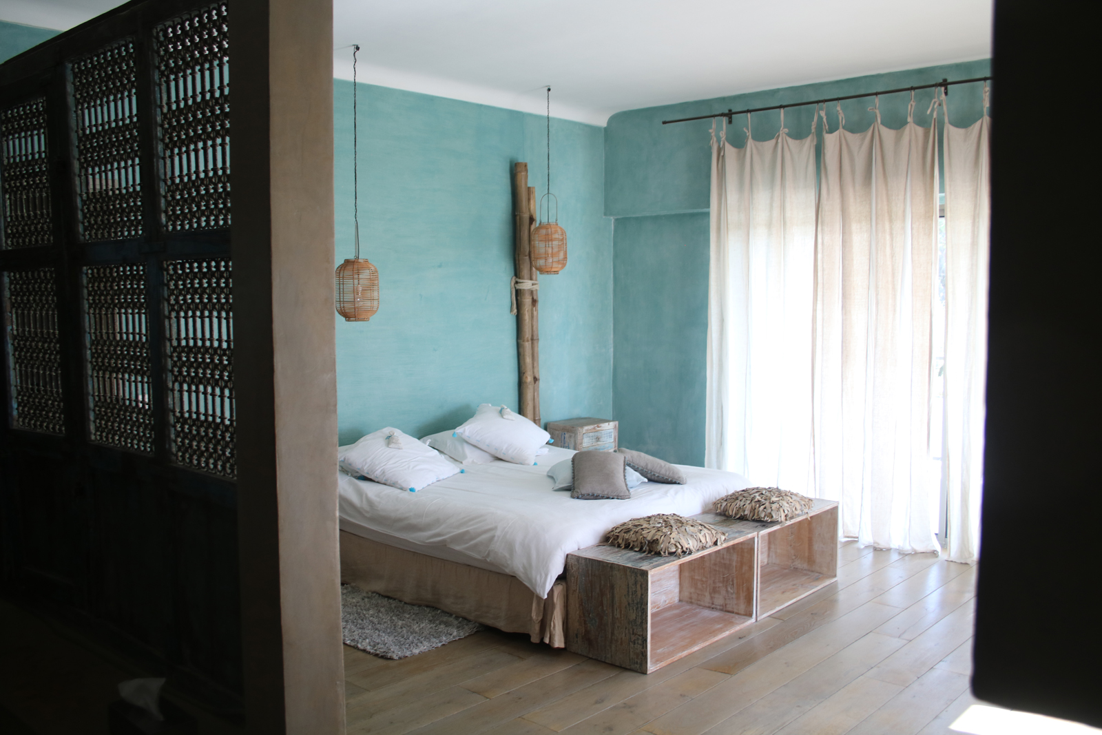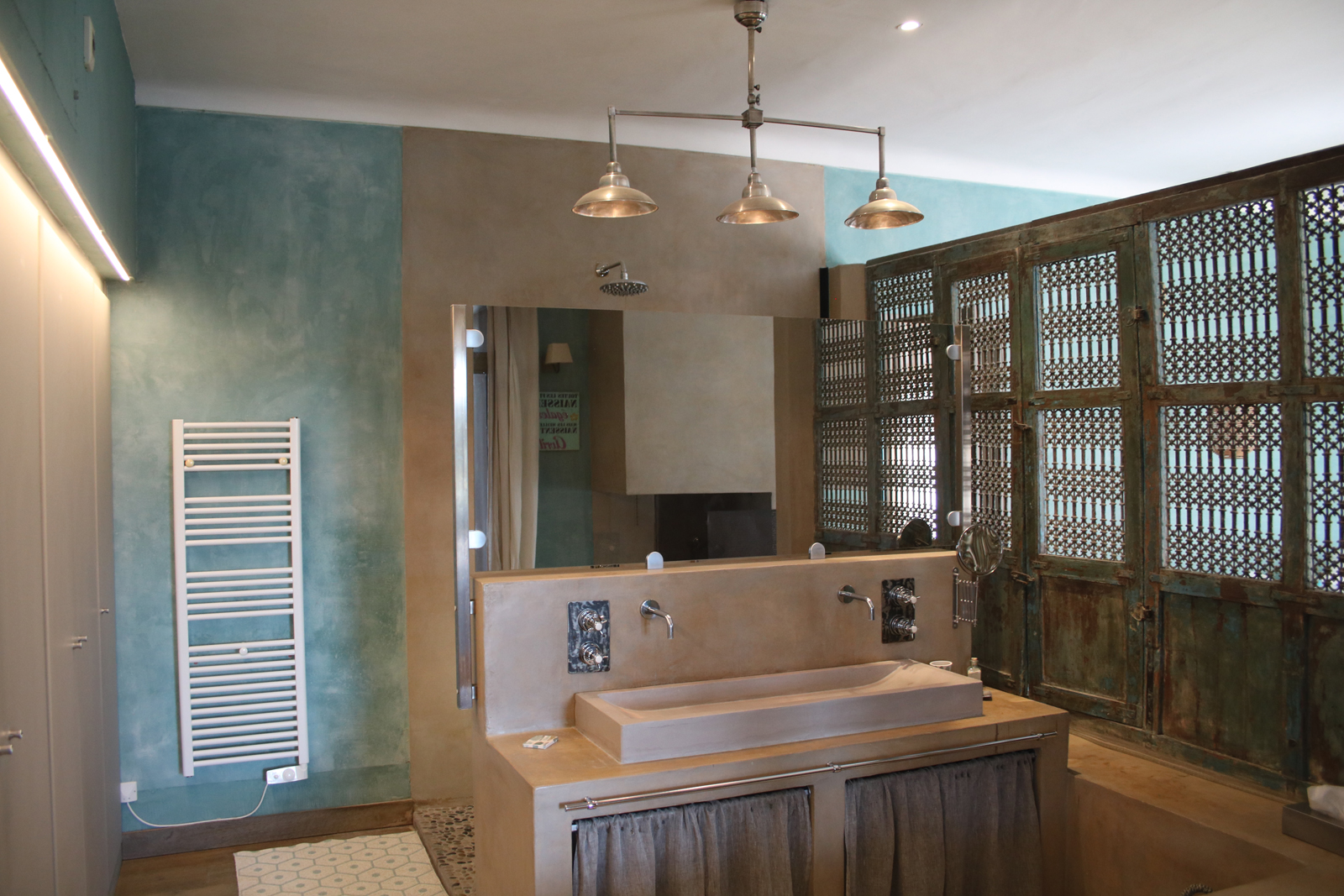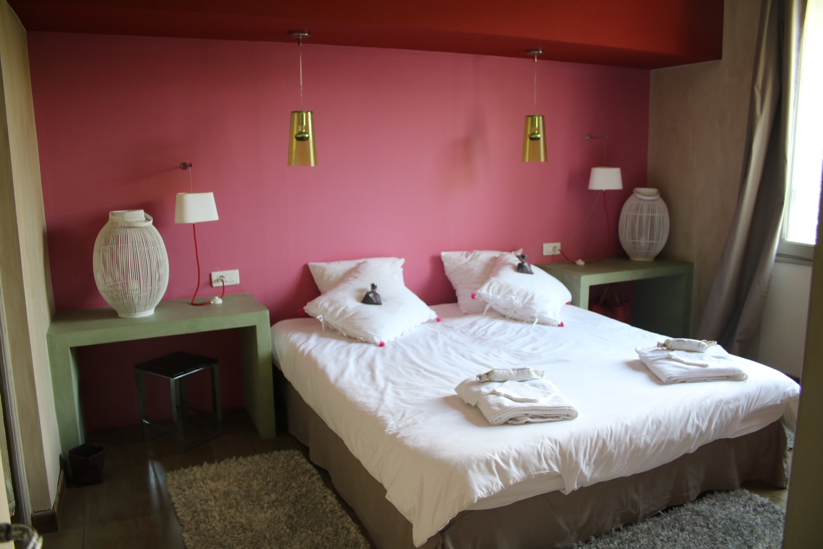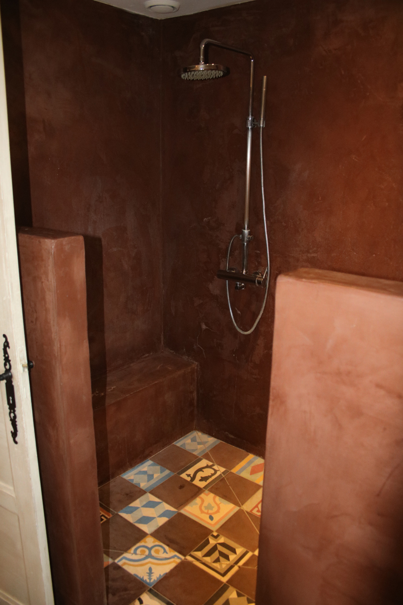 Chambre double n° 4, rose avec lit 180, dressing, exposition est et Salle de bain en suite d’inspiration marocaine avec baignoire