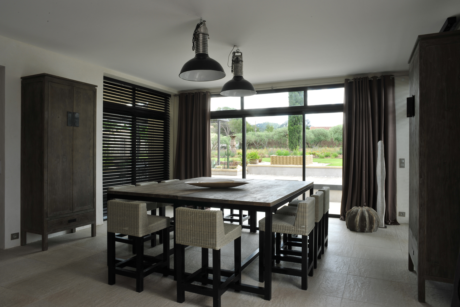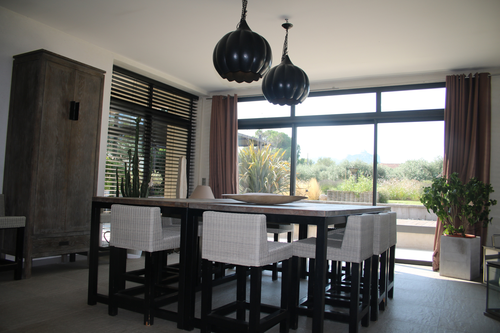 Salon - salle à manger spacieux et ouverts par de grandes baies vitrées donnant sur les Alpilles et la piscine