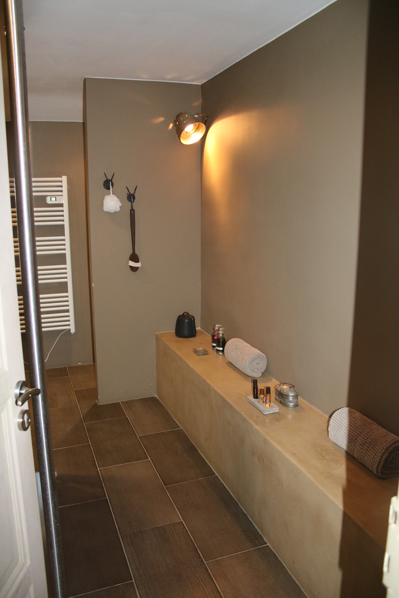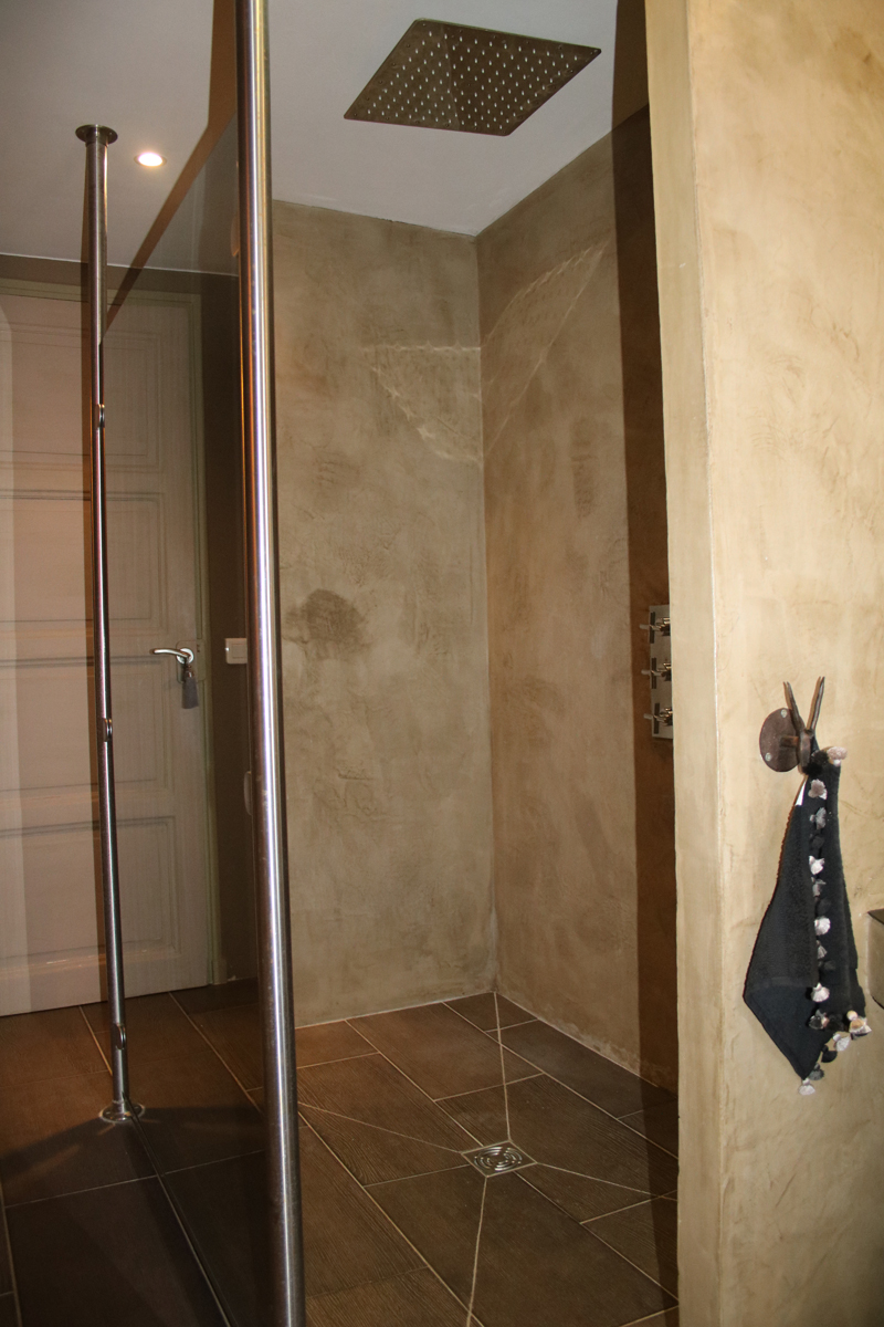Chambre double n°5, grise avec lit 180 et Salle de bain en suite avec douche