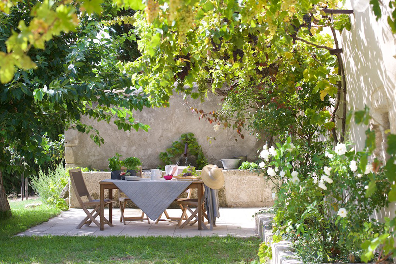 Terrasse couverte et aménagée sous la treille (vigne centenaire)