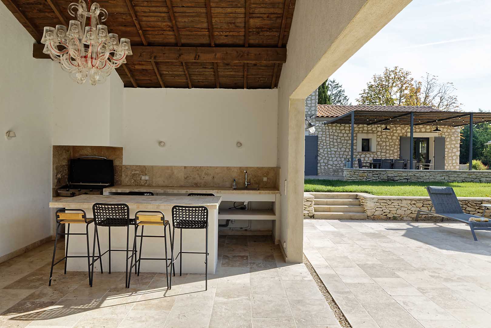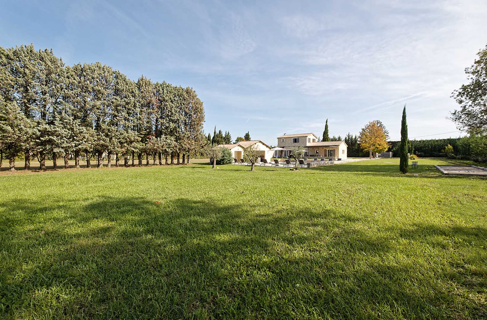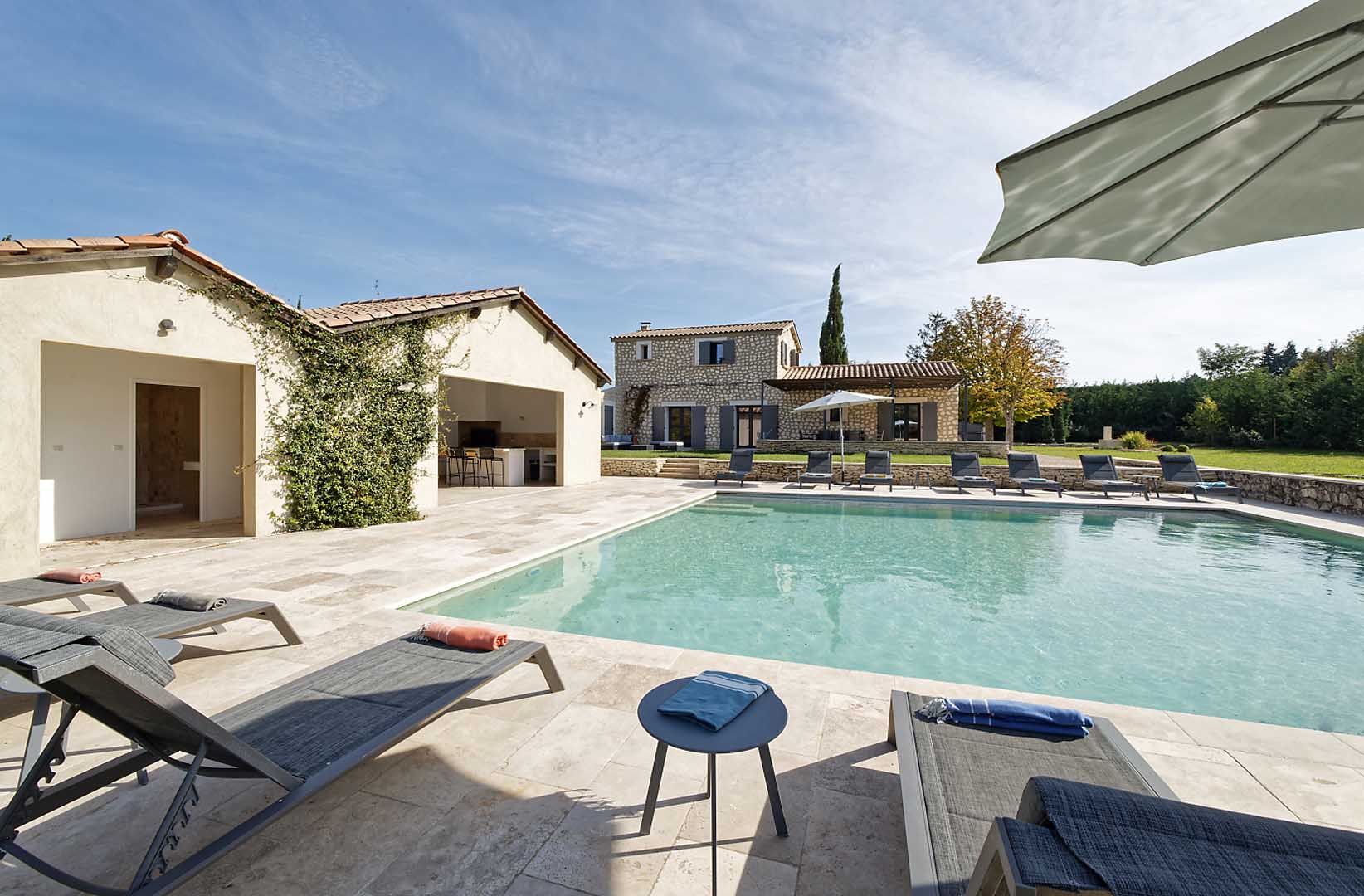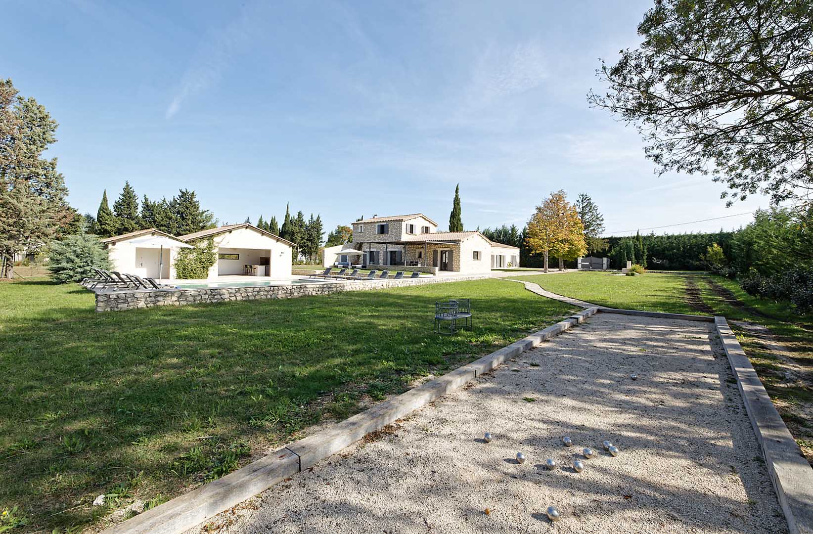 Cette grande maison est parfaite pour séjourner en toute quiétude. L’extérieur du mas est très bien aménagé : la pergola de 75m2 apporte de l’ombre au dessus de l’espace des repas dont la vue donne sur la piscine. Plus loin, vous profiterez d’un pool house de 45 m2 avec un îlot central qui rendra conviviaux les moments après la baignade.