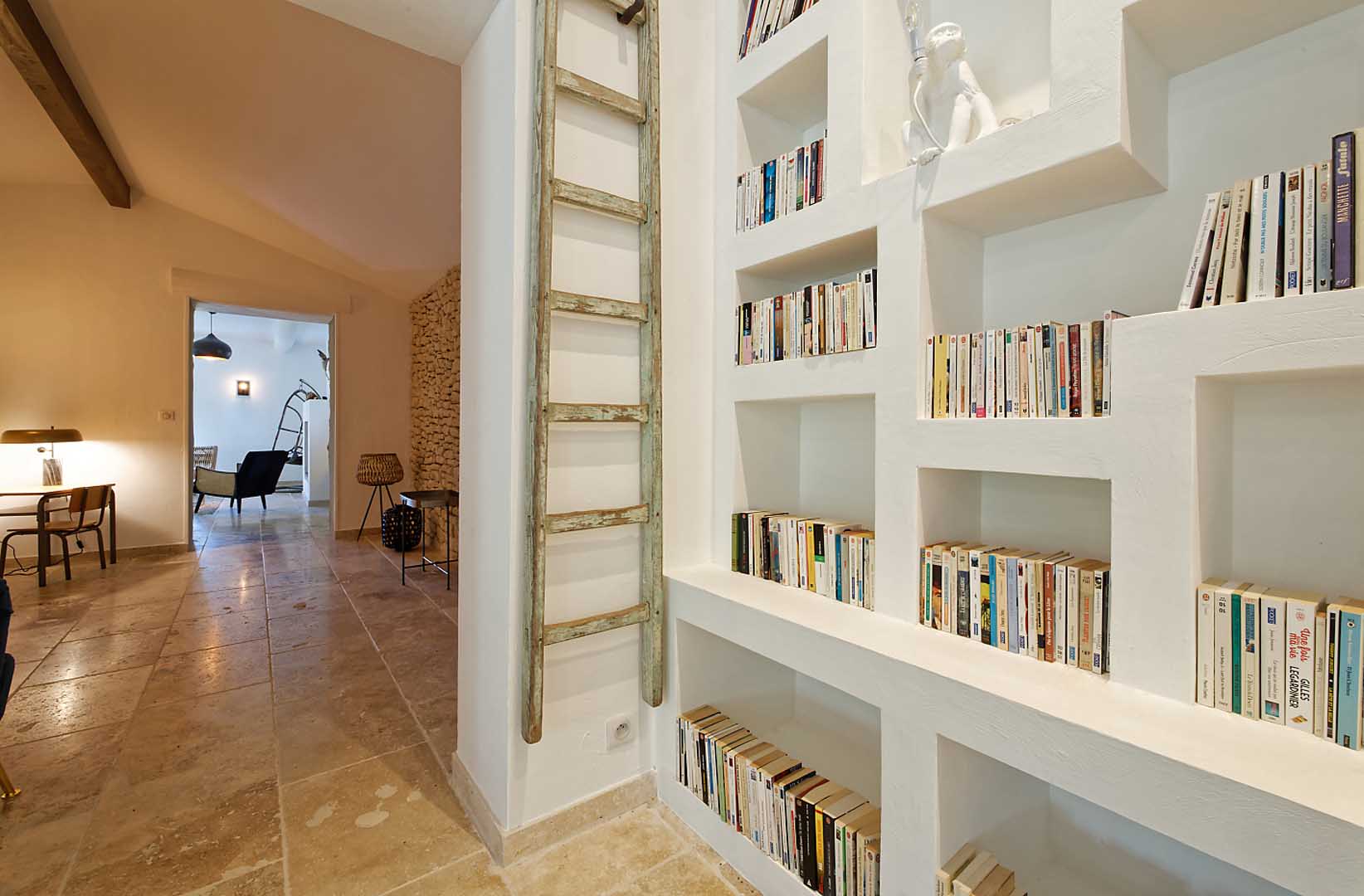 Salle TV avec bibliothèque
