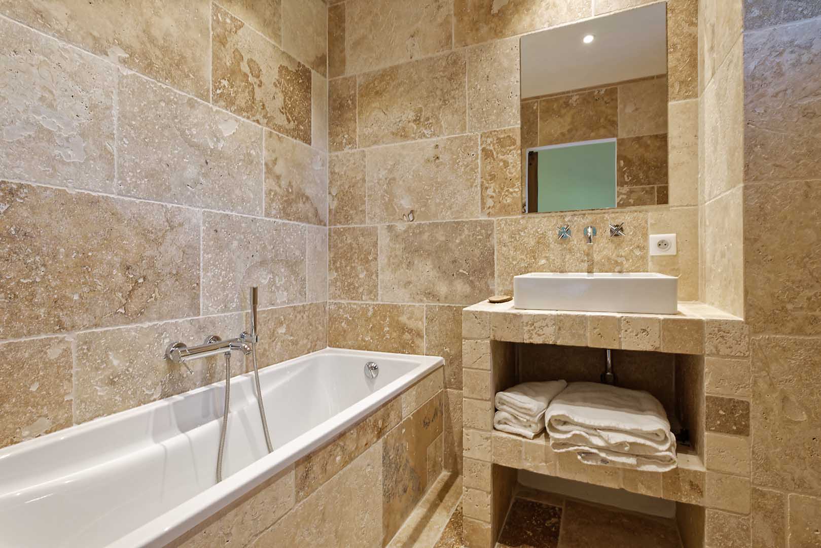 avec accès terrasse et Salle de bain en suite avec baignoire, lavabo simple