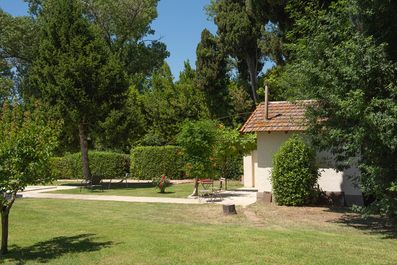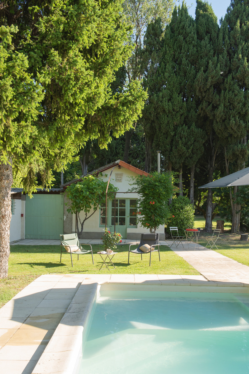 La piscine est disposée à quelques pas de la maison, et donne l’impression d’un endroit plus intime grâce aux arbres qui l’entourent. Cette distribution permet à ceux qui souhaitent faire une sieste de bénéficier d’une parfaite tranquillité pendant que d’autres profitent pleinement de l’eau.