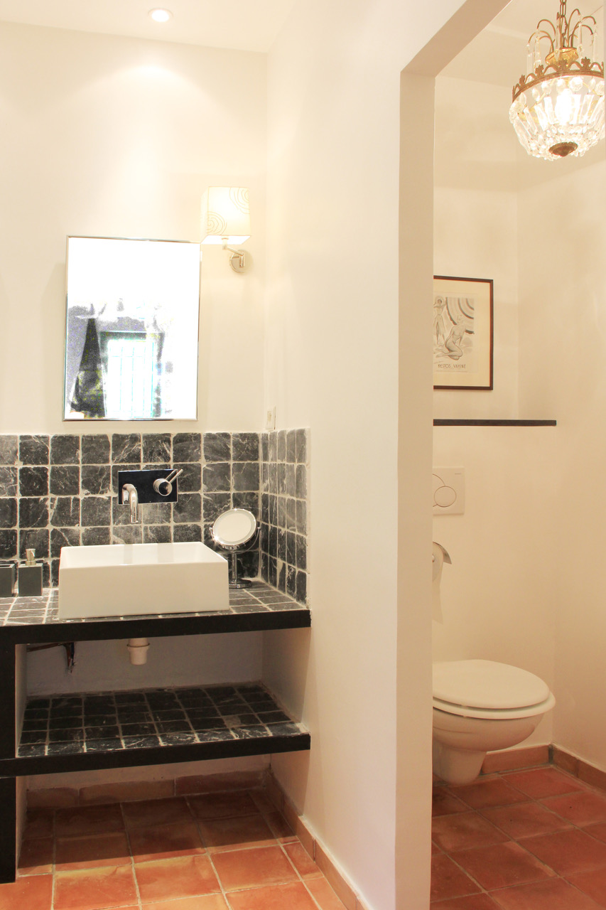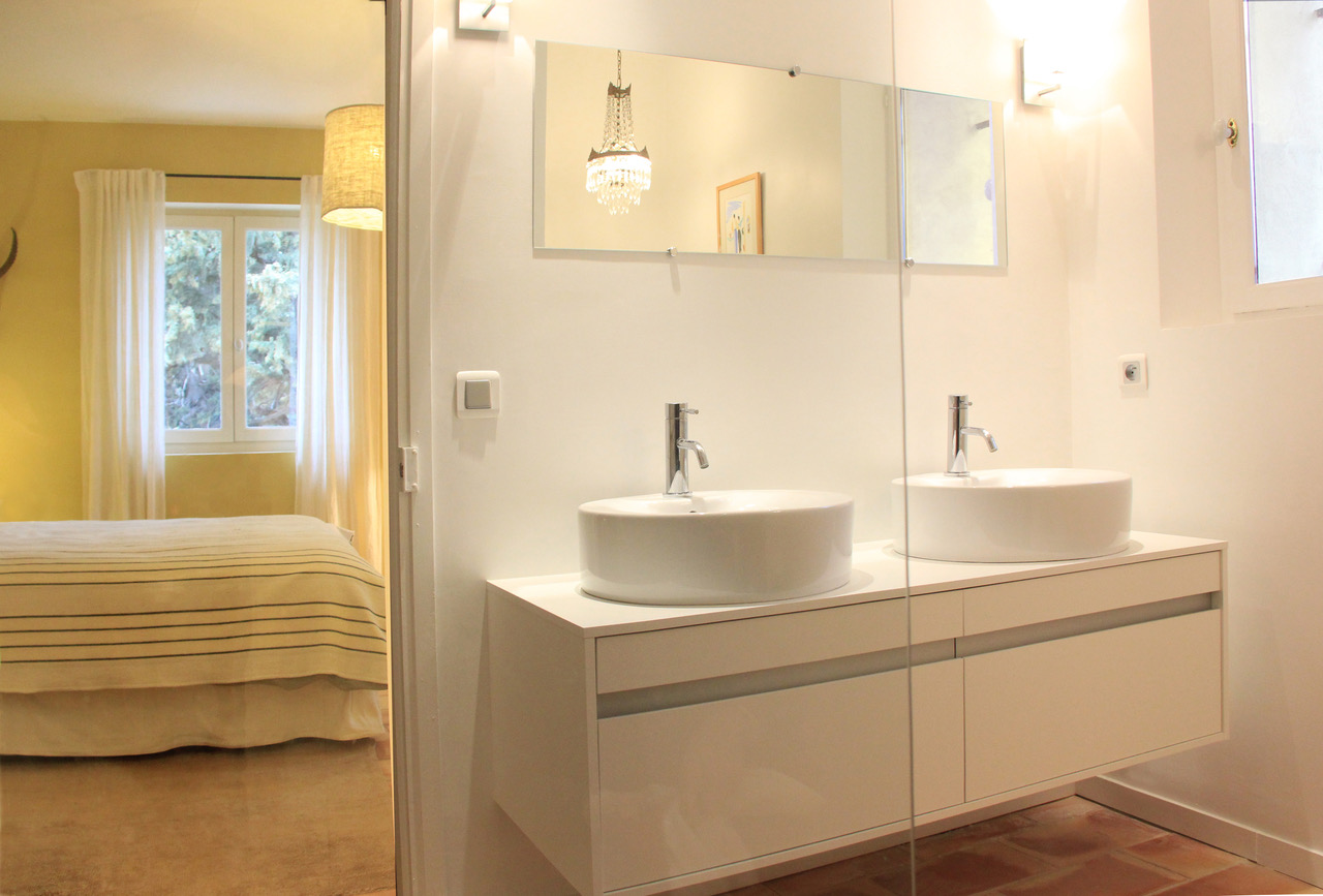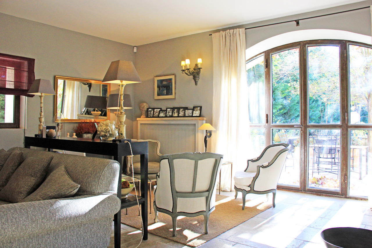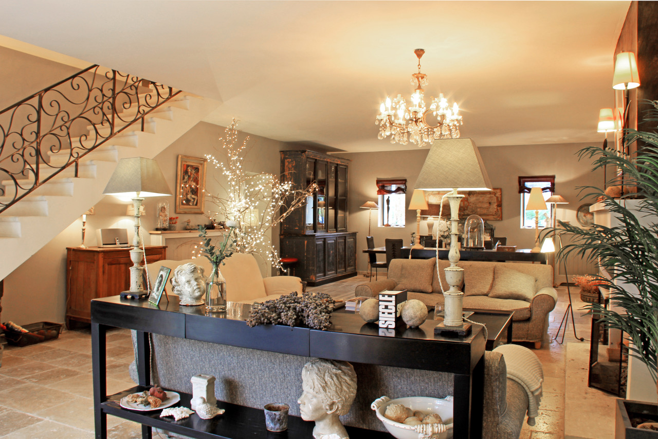 Ce mas vous offrira en effet le confort des grands et nombreux espaces : au rez de chaussée, un salon chaleureux, décoré avec élégance et empreint du style provençal tant recherché, est complété par un salon de télévision, sobre et moderne.