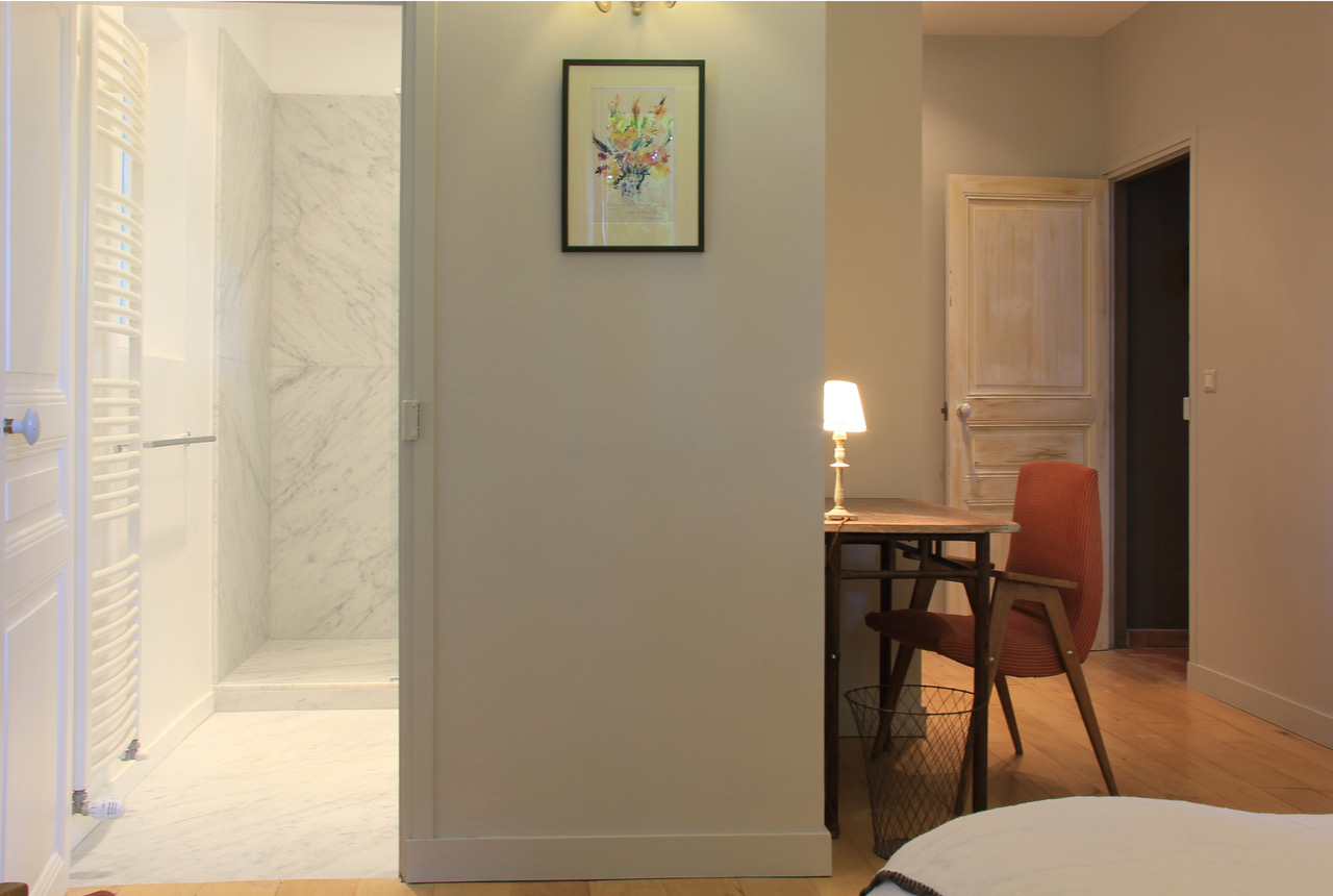 Les deux étages supérieurs se composent de 6 chambres, chacune avec sa salle de bain, et dont l’une