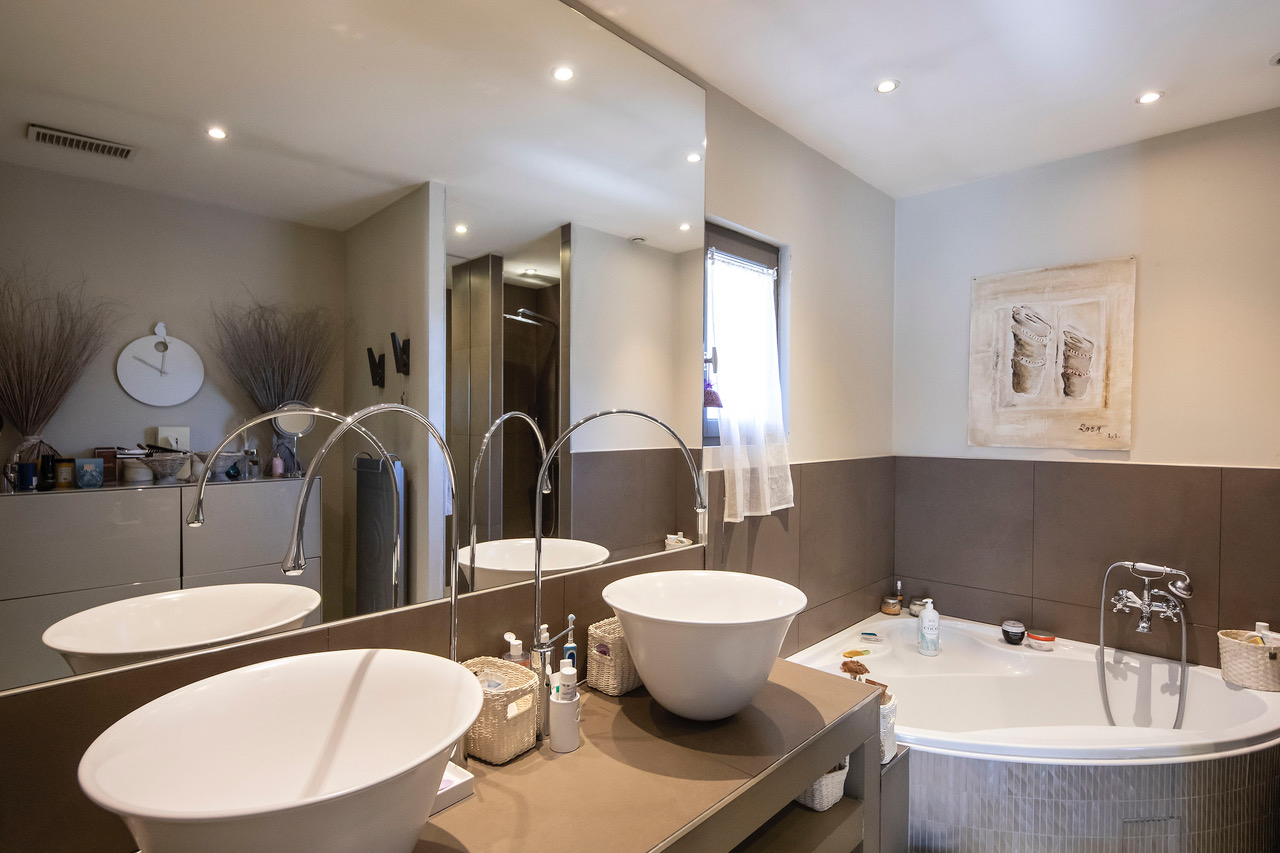 Chambre de Maître et Salle de bain en suite avec baignoire, douche
