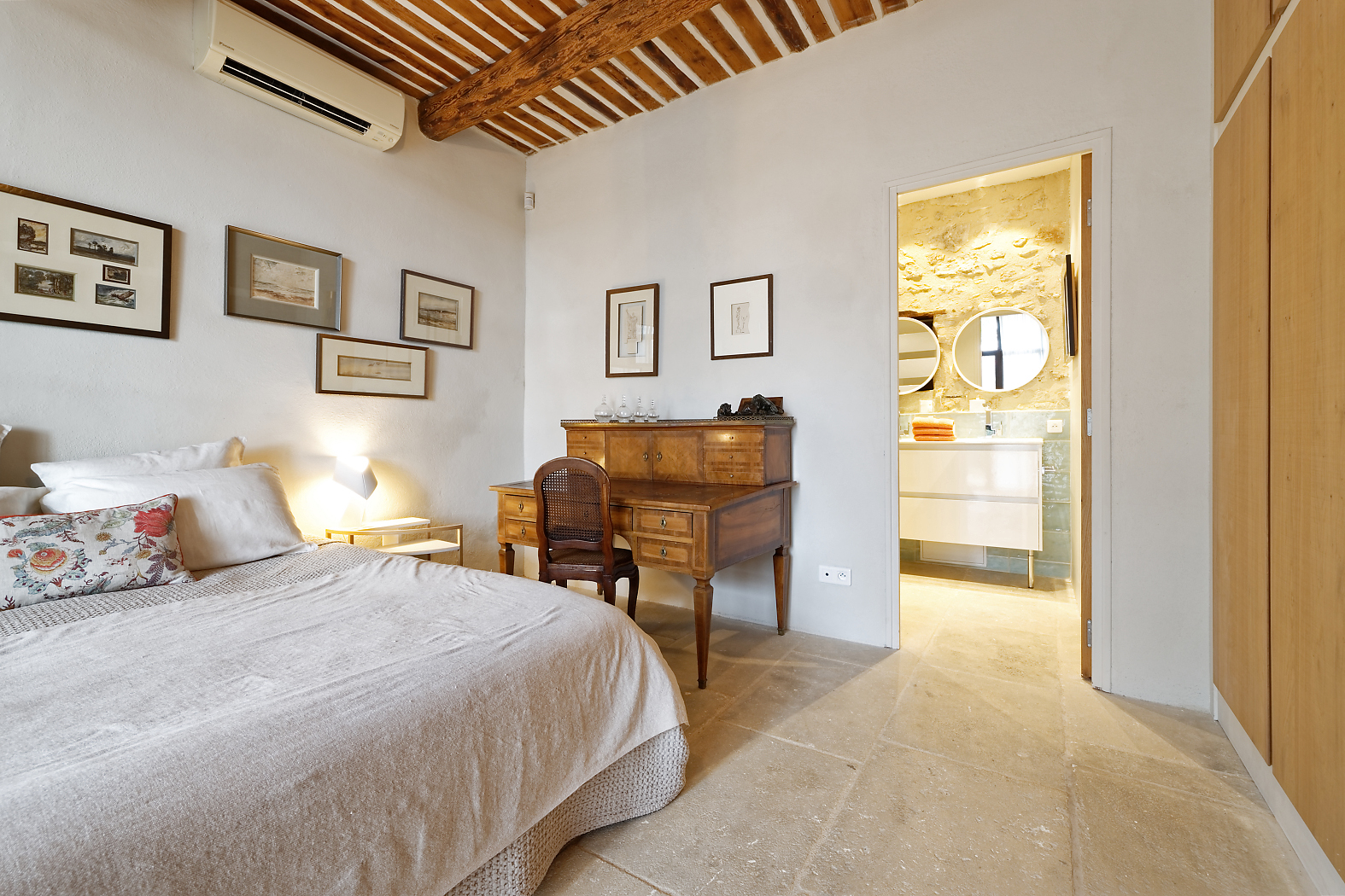 Cette belle maison avec piscine privée est sans doute l’endroit parfait pour vos vacances en Provence. Un grand jardin de 1700 m2 vous attend pour vos après-midi de farniente au soleil. Depuis la terrasse, vous pourrez observer les Alpilles en partageant un repas tous ensemble à l’ombre. Passez la porte et découvrez un intérieur décoré avec soin, créant une ambiance chaleureuse et accueillante. Le style industriel vintage de la maison est adoucit par le beige qui prédomine dans chaque pièce. Composée de 3 chambres elle peut loger au total jusqu’à 6 invités. Très bien équipée afin que ne manquiez de rien, vous bénéficierez d’un grand confort dans cette charmante villa de luxe. Un plancher rafraîchissant apportera de la fraicheur à la maison et permettra ainsi de garder un cadre de vie agréable. En fin de journée quand le soleil se couche, le ciel offre un spectacle coloré unique à travers les cyprès du jardin. En Provence, la douceur de vivre se fait ressentir absolument partout. Partez en balade et profitez de cette tranquillité indéniable que l’on trouve dans le sud. Tous les vendredi matins, vous pourrez vous rendre sur le marché très apprécié d’Eygalières. La maison est aussi le point de départ parfait pour les randonnées sur les sentiers qui rejoignent les Alpilles. Ce parc naturel est réputé pour être l’un des plus beaux de France et vous fera bénéficier de superbes paysages aussi dépaysants qu’époustouflants. Pour les amateurs de golf, les Beaux de Provence ne sont qu’à quelques kms et sont réputés pour leurs terrains plongés dans une nature encore très préservée.
