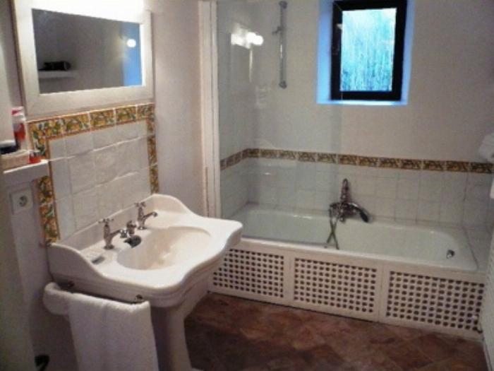 Salle de bain partagée avec baignoire, lavabo simple, wc