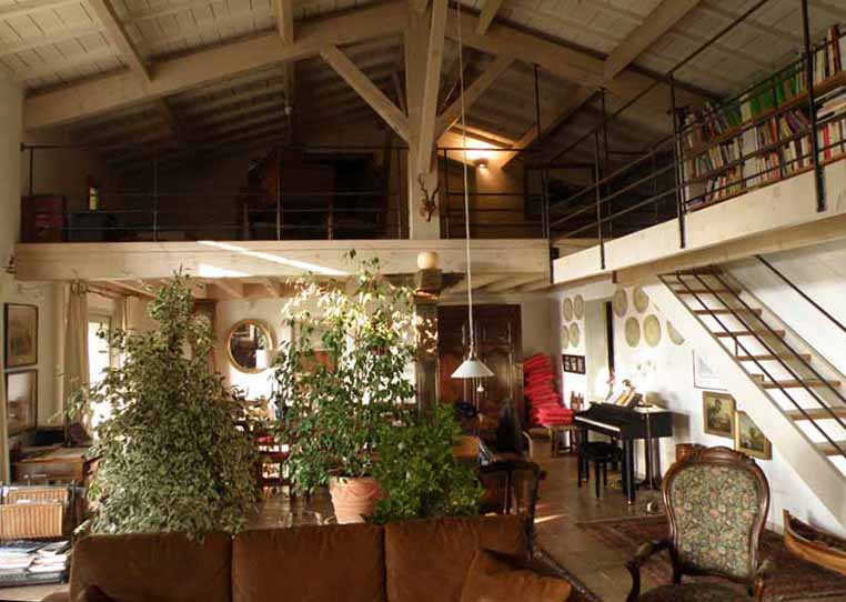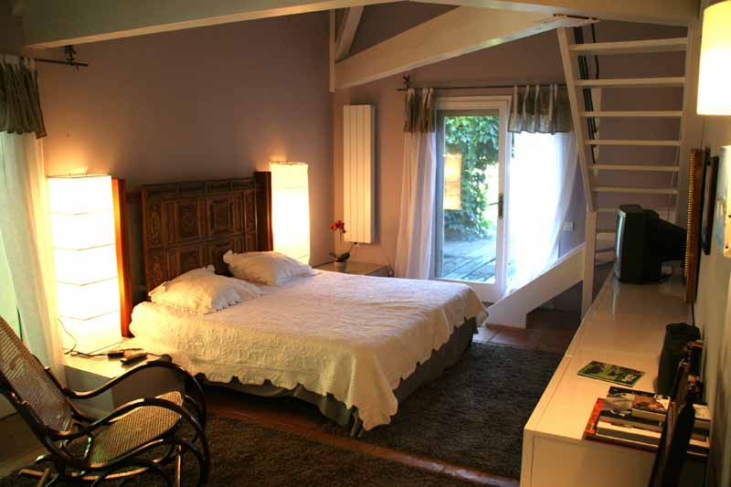 Chambre de Maître en duplex sur mezzanine et Salle de bain en suite avec douche, bidet, lavabo simple, baignoire, wc