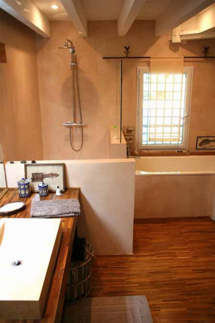 Chambre double sur les marais et Salle de bain en suite avec douche, baignoire, wc, bidet