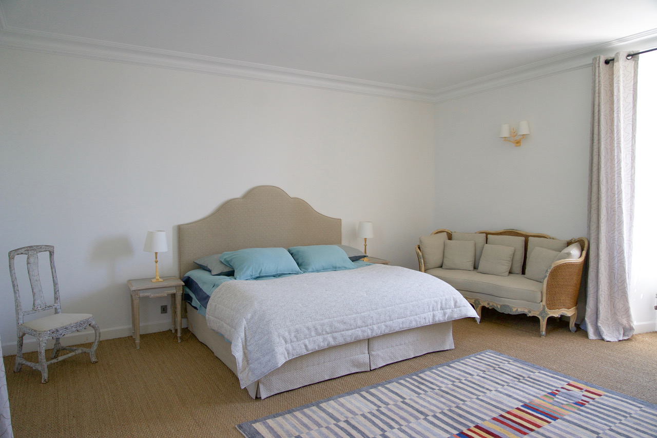 Chambre double d’environ 20 m2 avec lit 190 x 200 avec climatisation, vue jardin