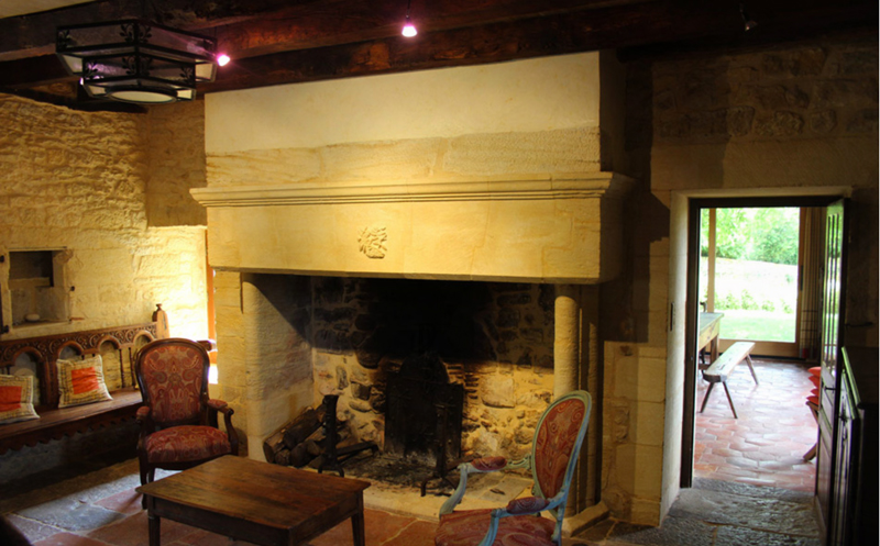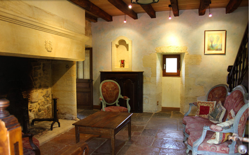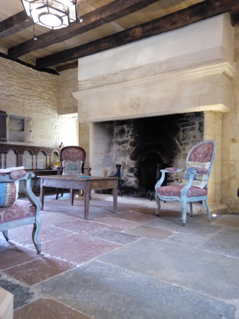 Salon et sa cheminée du XIIIe siècle avec chaine hifi
