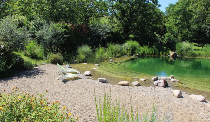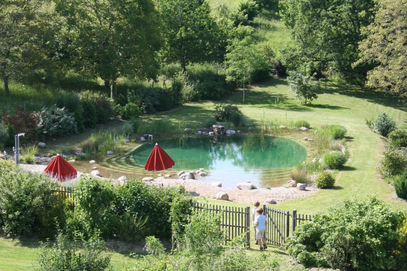 Le domaine est formé de plusieurs gîtes, et vous invite, offrant à chacun son intimité, à profiter de ses espaces lumineux. Au sein d’un bâti en pierres dorées, d’une délicate rusticité et adoptant l’architecture locale, vous vous imprégnerez d’une vie douce et ravissante. La pièce incontournable pour vos moments de convivialité sera sans doutes la salle à manger, vaste et lumineuse, qui donne sur une jolie terrasse surplombant de verdoyantes collines boisées. Si vous êtes adeptes des couleurs pastels, des matériaux nobles tels que la lave émaillée, la pierre de taille, le stuc et le bois, les intérieurs de la maison donneront beaucoup de charme à votre séjour. Fait exceptionnel : le lieu a été pensé pour adopter pleinement une haute qualité environnementale. Vous y trouverez de nombreux matériaux écologiques : sommier en latex 100% naturel, draps en pur coton, eau pure (puisé dans un forage sur site), chauffage géothermique. En extérieur, vous apprécierez pleinement l’immense jardin paysager, et plus bas une véritable piscine écologique, inédite : un bassin de baignade naturelle avec sa petite cascade, sa plage, son bac à sable... à partager avec le reste du domaine. Tout autour de vous, vous admirerez une campagne paisible, où règne une grande tranquillité.