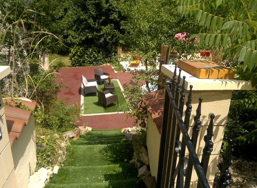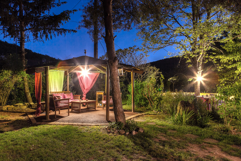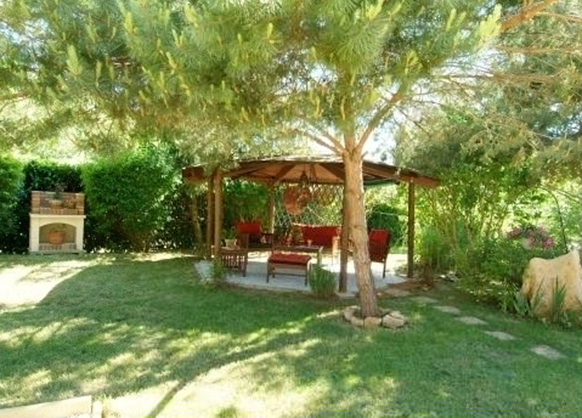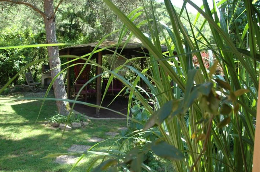 A côté de la piscine, vous pourrez prendre le thé sous l'ombre du kiosque, ou vous relaxer sur la terrasse de terre cuite. Le petit appartement indépendant offre le même confort que la maison principale, et dispose de deux chambres élégantes. Ses baies vitrées, derrière ses ferronneries, permettent de jouir d'un contact permanent avec l’extérieur. Une cuisine d’extérieur toute équipée complète depuis 2017 les prestations luxueuses que propose le domaine. La maison dispose de plusieurs hectares de terrains en gazon et forêt. La vue est plein sud et donne sur les collines boisées.