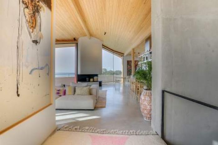 Grande et lumineuse pièce de vie ouvrant sur l’océan.