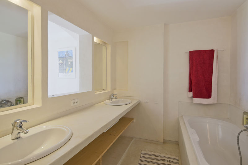 Chambre double de 20 m2 avec terrasse, convertible en deux lits 80*190 avec lit 160, vue mer, climatisation et Salle de bain en suite avec baignoire, lavabo simple et WC d’invités