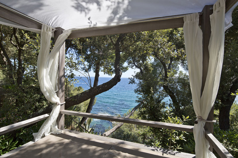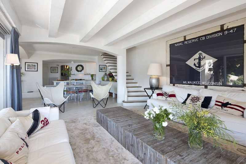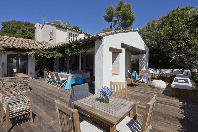 À 15 minutes seulement de Saint-Tropez, dans le quartier chic de la Croix-Valmer, au bord de la mer, l’on découvre avec étonnement cette merveilleuse propriété, une bâtisse ancienne rénovée avec goût. Elle est composée de 7 chambres et 6 salles de bain, et invitera ses hôtes à la relaxation. Vous pourrez vous installer confortablement sur l’une de ses trois terrasses aménagées avec soin, pour manger, lire, discuter et profiter du soleil. Pour les plus contemplatifs, faites quelques pas et offrez vous le plaisir simple d’une sieste sur la délicieuse plateforme de bois qui surplombe la mer, installée le long du chemin qui vous amène vers la plage.