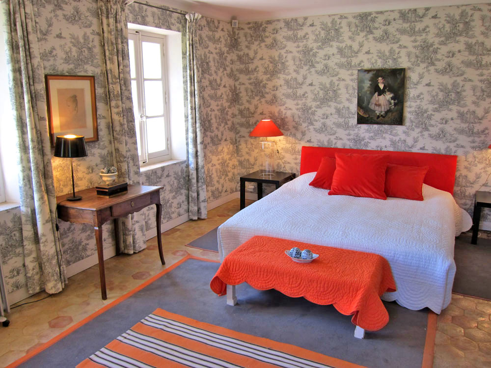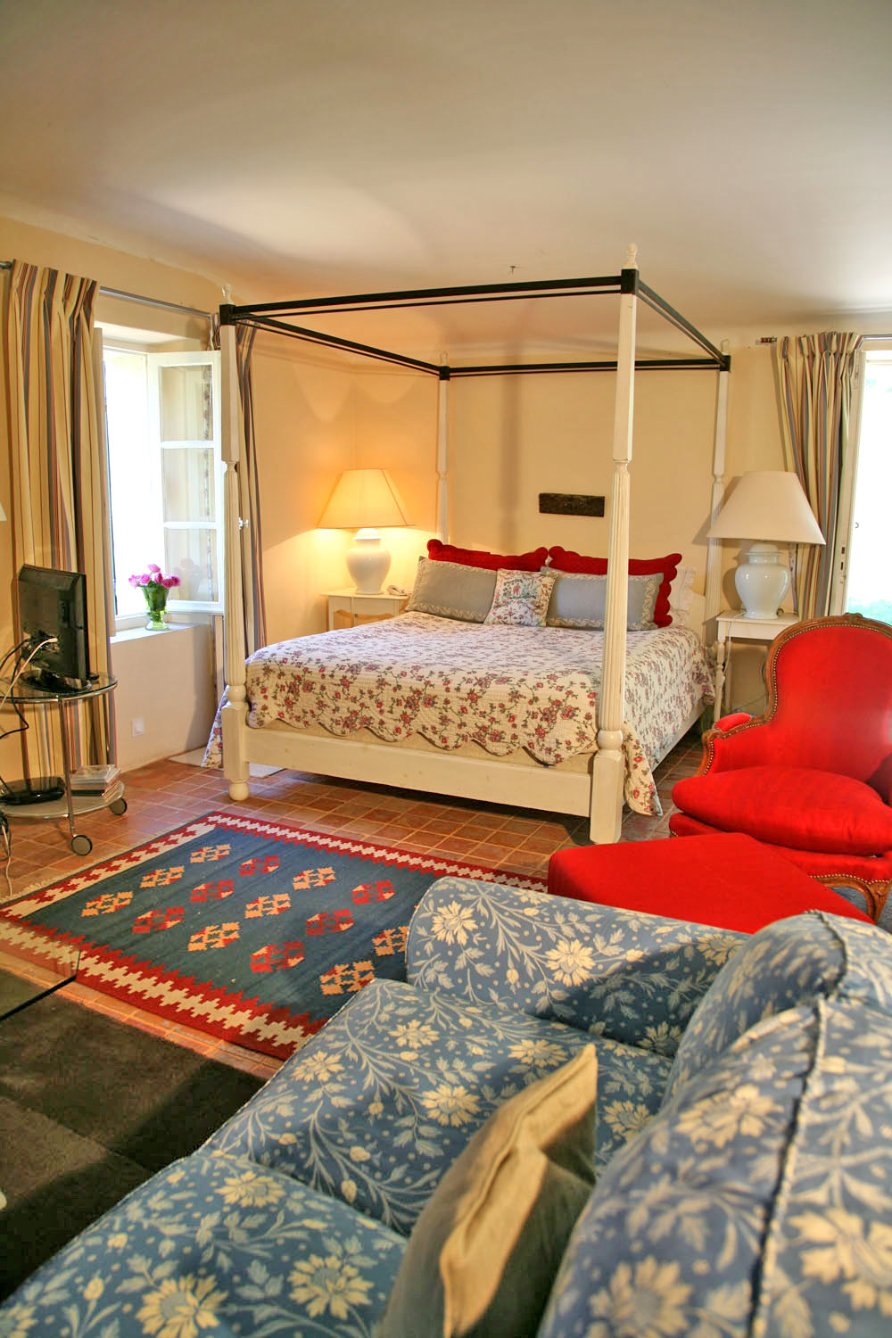 Chambre de Maître avec accès terrasse, climatisation et Salle de bain en suite avec baignoire, wc