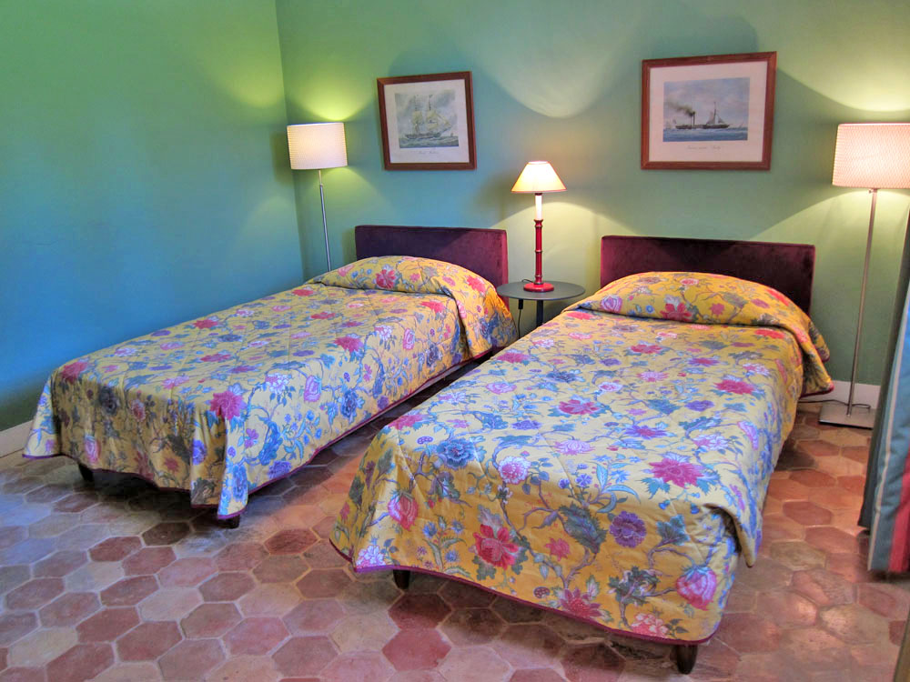 Chambre à lits jumeaux adapté pour des ados avec lit 90, climatisation et Salle de bain en suite avec baignoire, wc
