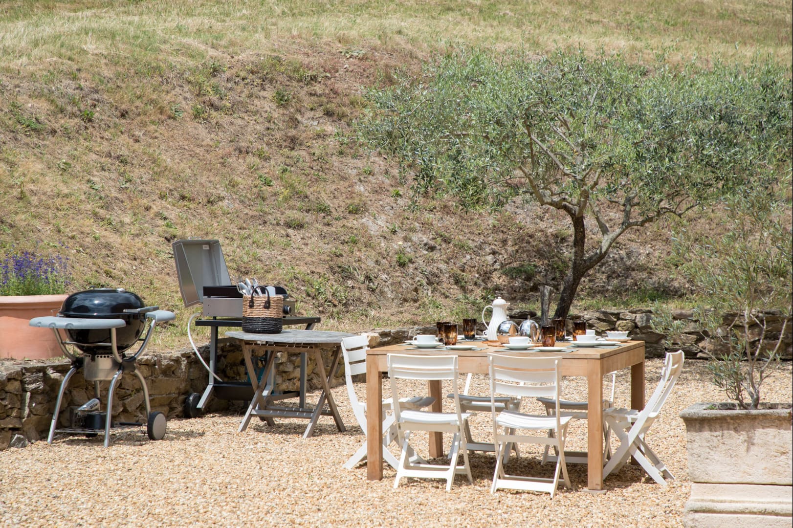 Terrasse aménagée la salle à manger d’extérieur peut accueillir 20 personnes, tandis que le salon de plein air offre un grand confort et toute la tranquillité dont on peut rêver pour la sieste ou les cocktails du soir.