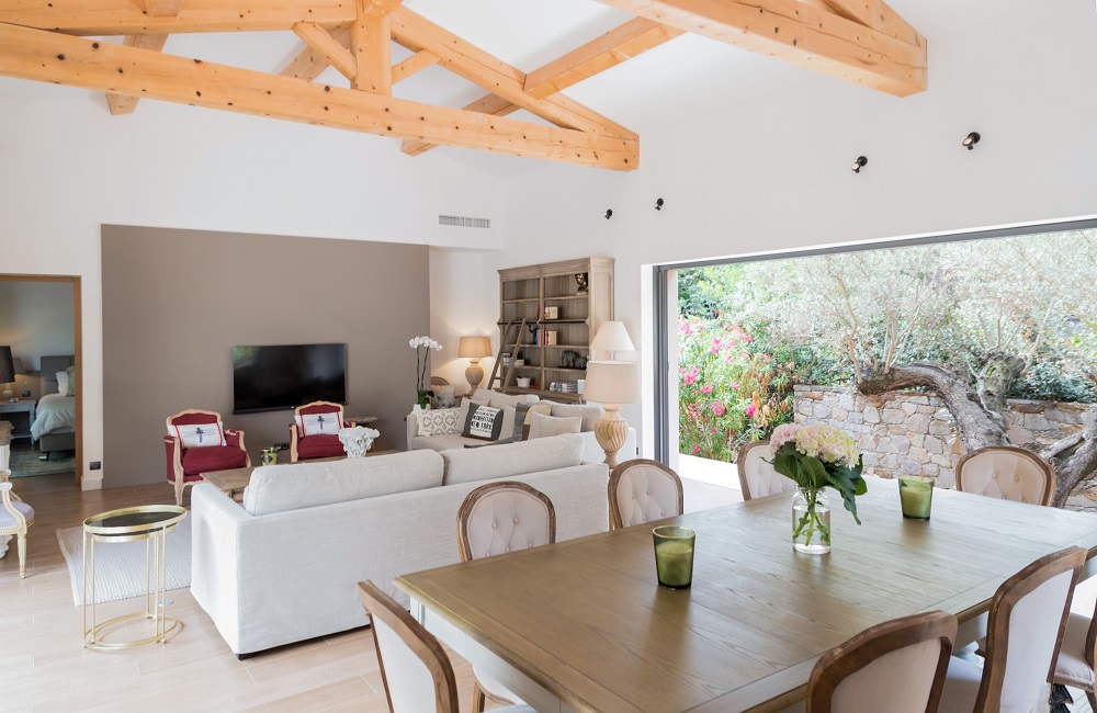 Belle propriété nichée au coeur d’une écrin de verdure luxuriant, d’oliviers et de lauriers. Elle se situe dans un domaine privé sécurisé, à 200 mètres de la plage de sable de Pampelonne, à l’écart du boulevard et à courte distance à pied du célèbre Club 55. Le joli village de Saint-Tropez avec son marché local, bars et restaurants se trouve à 10 minutes en voiture