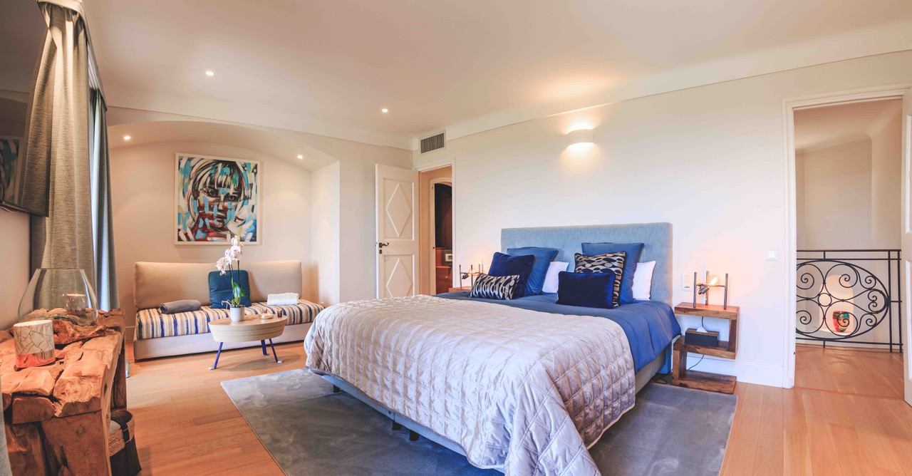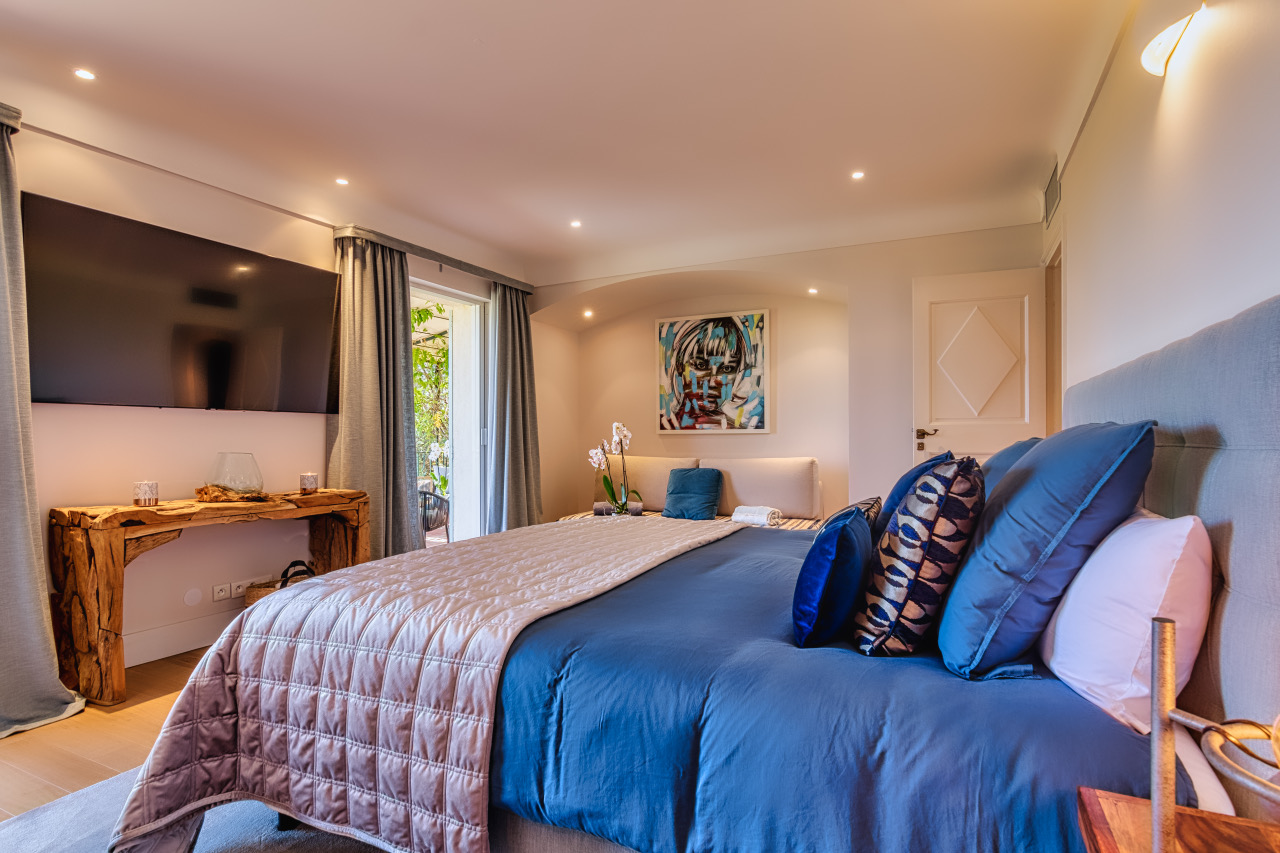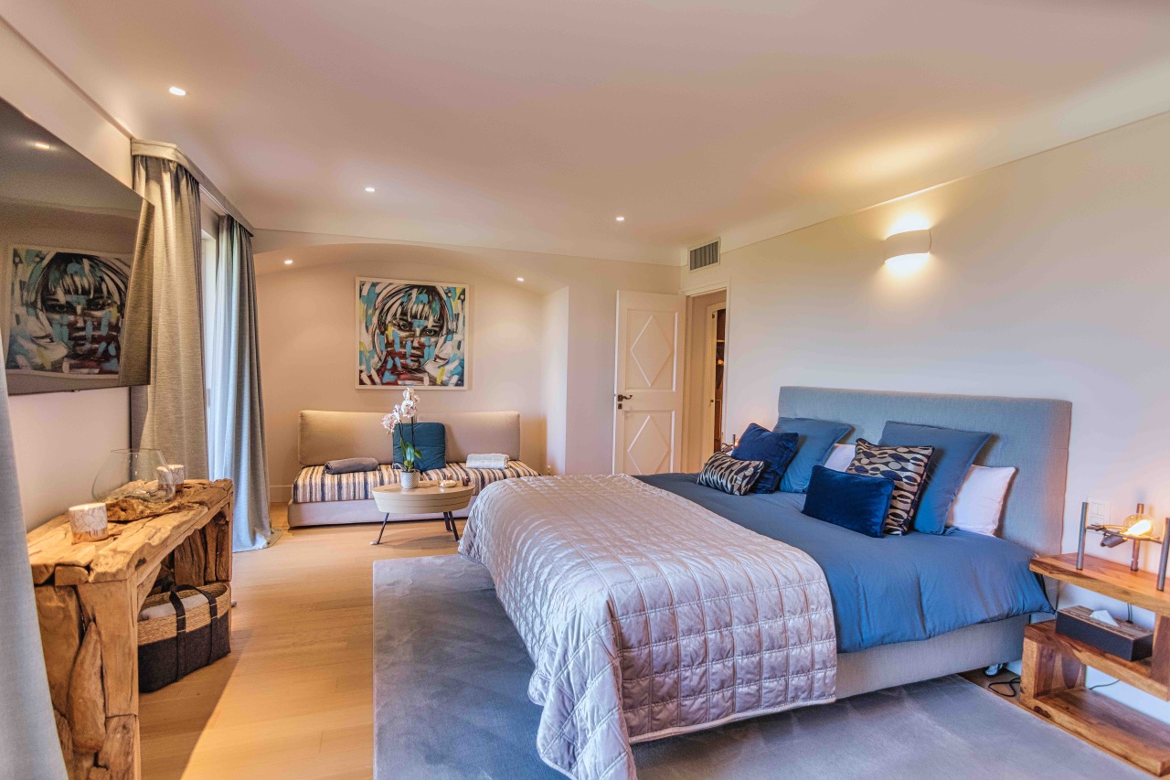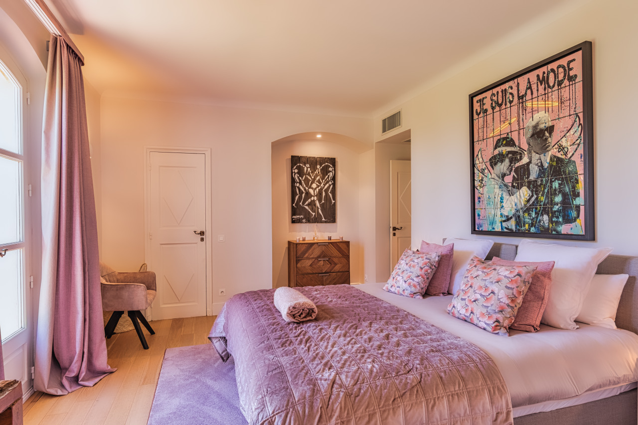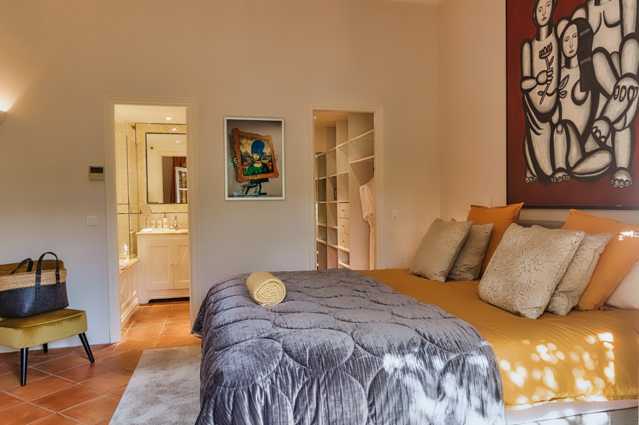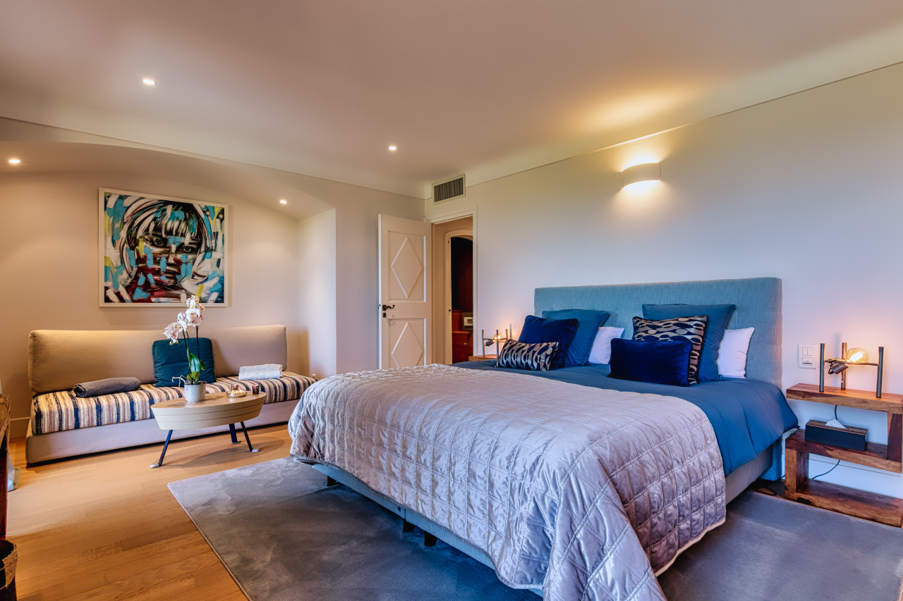 Très spacieuse et prestigieuse, cette villa provençale remplira certainement tous les critères de la maison de vos rêves. Décorée par le designer de l’Hôtel Ritz Carlton de Montréal, ayez la certitude qu’à l’intérieur, rien n’a été laissé au hasard. Avec son talent incontournable, Hans Peter a soigné l’apparence de cette maison et lui a donné un style bohème chic très en vogue. Toutes les chambres sont en suite et confortablement équipées afin de garantir votre bien-être le plus total. Certaines suites bénéficient d’un accès direct au jardin, d’autres d’une terrasse aménagée avec une vue dominante sur la mer.