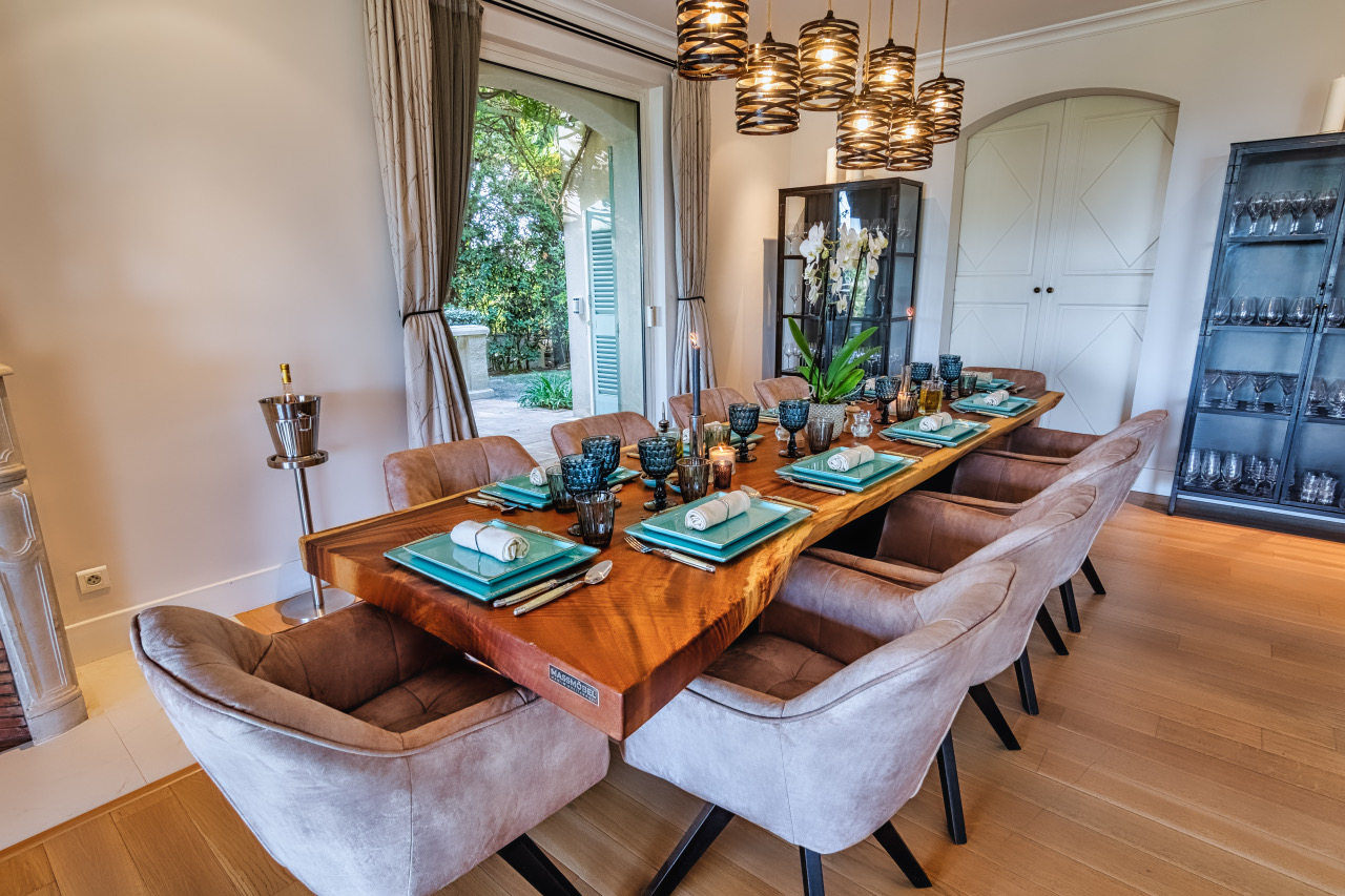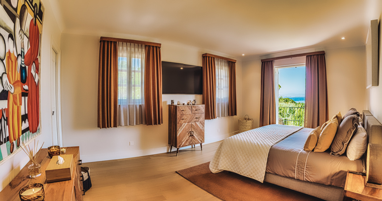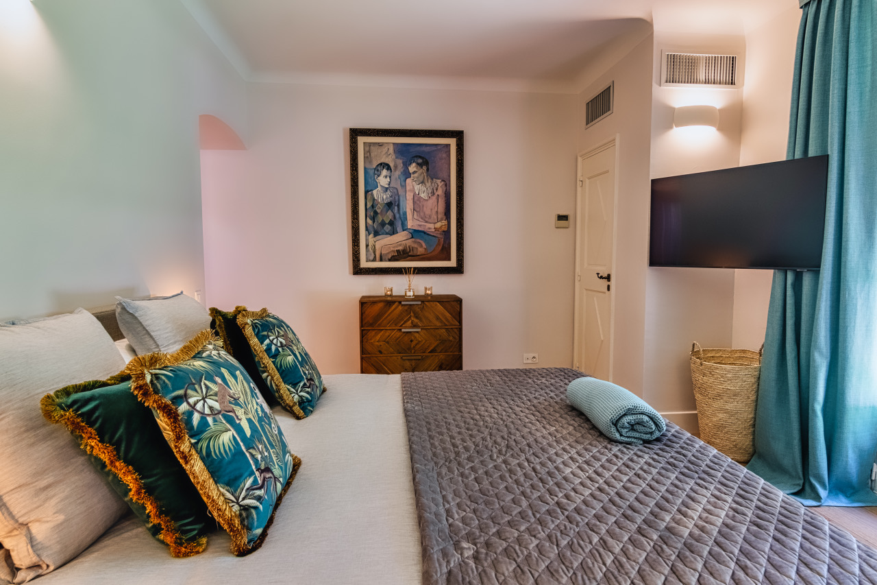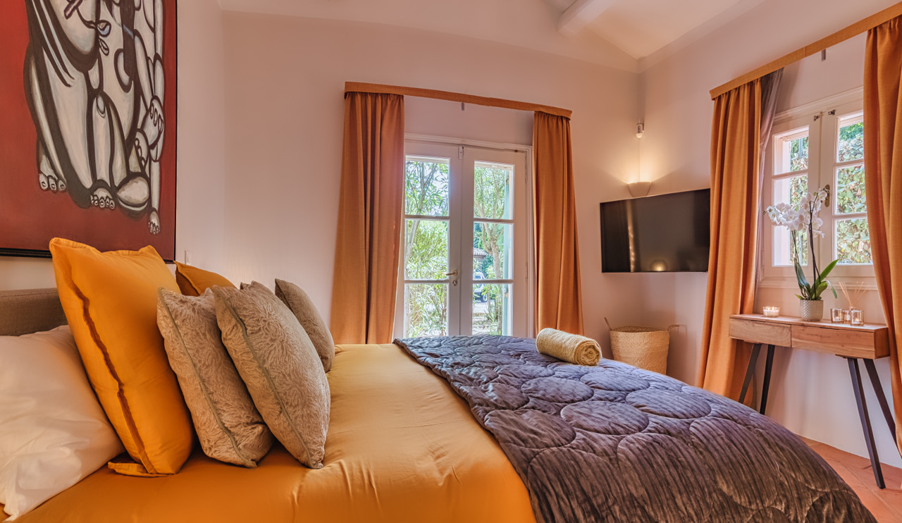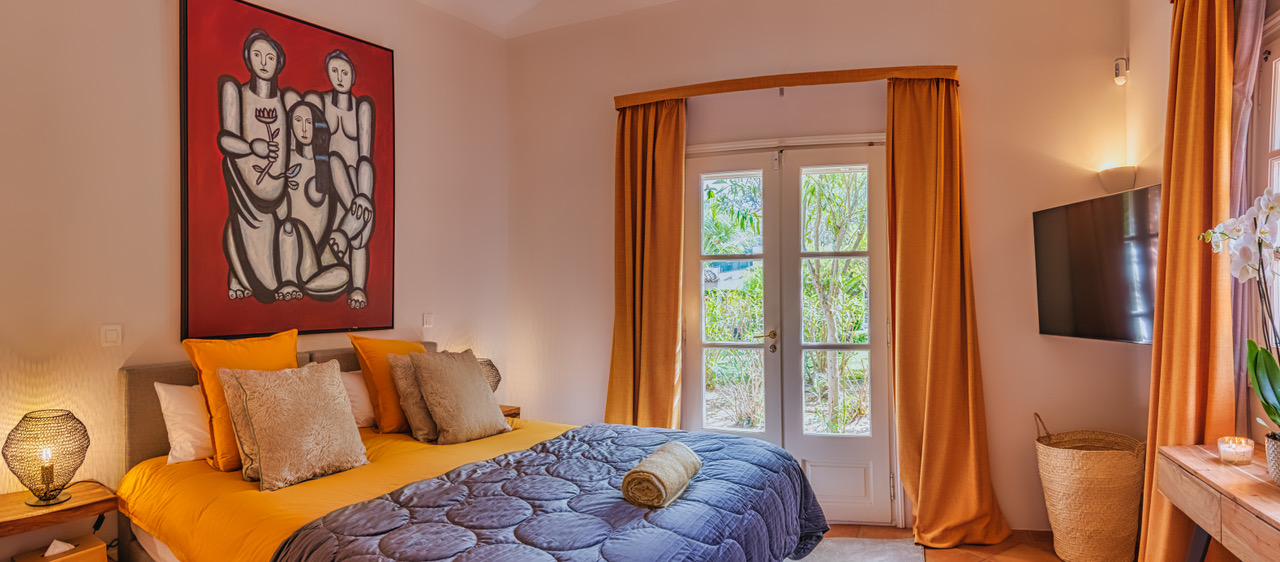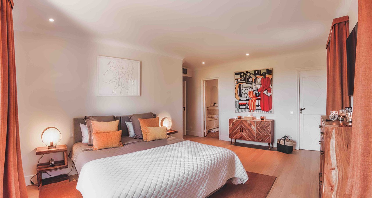 Très spacieuse et prestigieuse, cette villa provençale remplira certainement tous les critères de la maison de vos rêves. Décorée par le designer de l’Hôtel Ritz Carlton de Montréal, ayez la certitude qu’à l’intérieur, rien n’a été laissé au hasard. Avec son talent incontournable, Hans Peter a soigné l’apparence de cette maison et lui a donné un style bohème chic très en vogue. Toutes les chambres sont en suite et confortablement équipées afin de garantir votre bien-être le plus total. Certaines suites bénéficient d’un accès direct au jardin, d’autres d’une terrasse aménagée avec une vue dominante sur la mer.